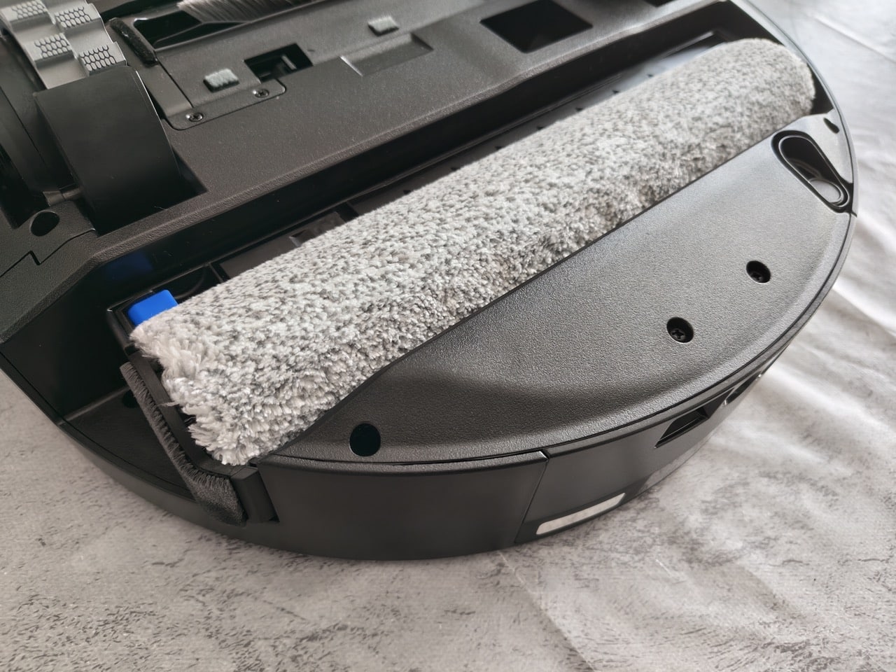 Ecovacs abandonne ici les serpillières rotatives classiques pour proposer un système à rouleau beaucoup plus efficace. Ce rouleau exerce une pression constante sur le sol, tout en étant nettoyé en continu grâce à un système d’injection d’eau.