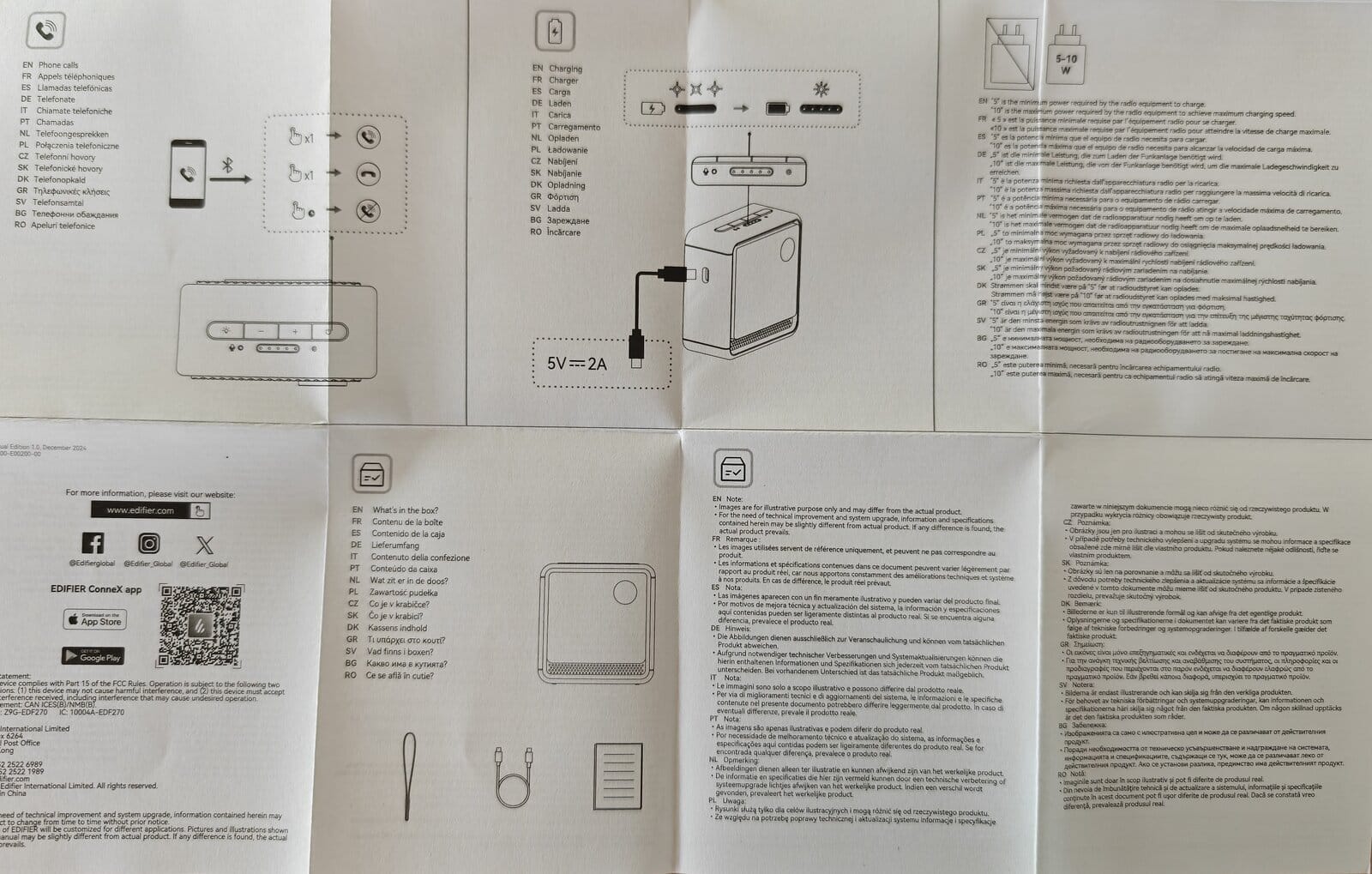 - Bluetooth 5.4, app Edifier ConneX, mode stéréo avec deux enceintes