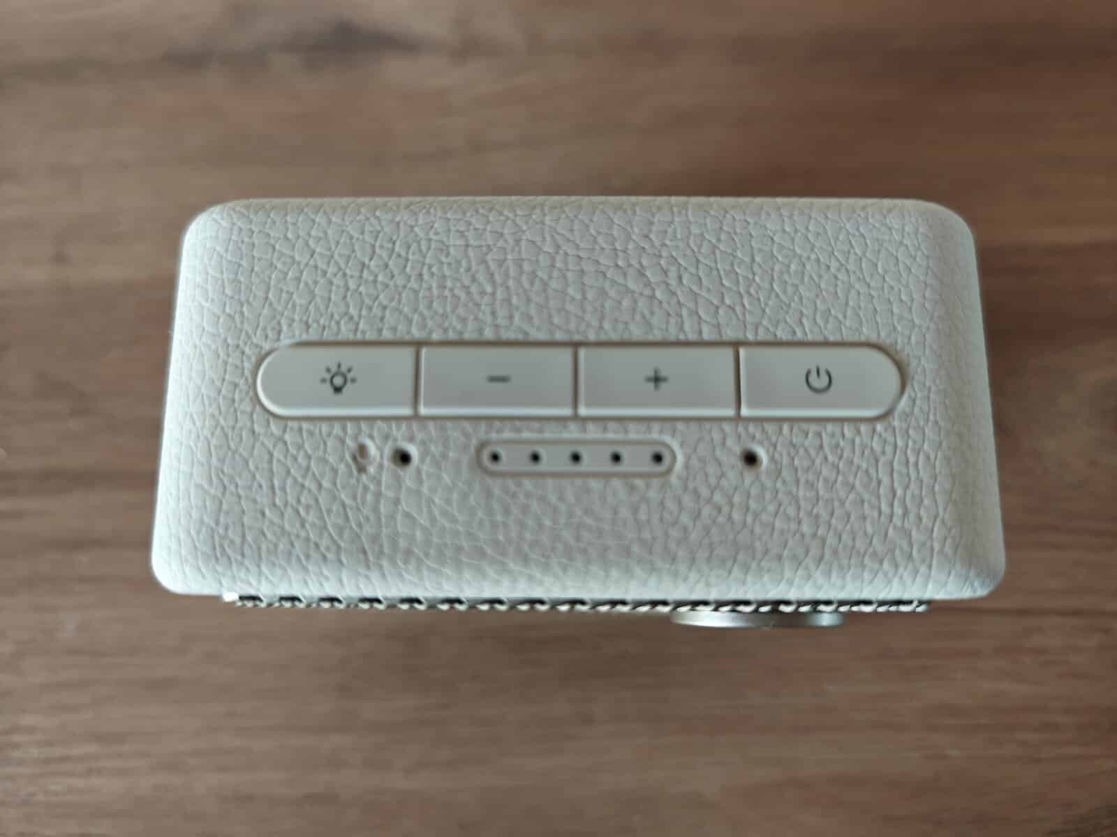 En pratique, l’ES20 délivre un son équilibré pour sa catégorie. Les médiums et voix sont clairs, tandis que le basses restent présentes sans excès. En usage mono, elle remplit bien une pièce de taille moyenne. En mode stéréo (deux unités), le rendu gagne en ampleur. L’étanchéité permet une utilisation en extérieur sans crainte. Il est donc possible de l’utiliser dans sa salle de bain sans soucis. L’autonomie s’approche souvent de 12 à 15 heures selon l’usage et l’éclairage. Quelques distorsions apparaissent à volume maximal, mais cela reste acceptable pour ce format. De plus le niveau sonore n’a pas besoin d’être poussé à fond au vu de la puissance qu’elle peut rendre, ce n’est donc pas un frein de ce côté.