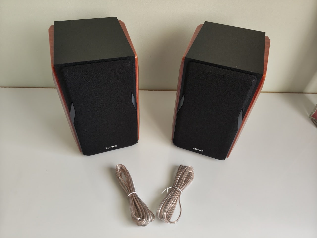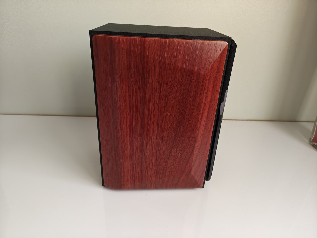 Dès le déballage, les Edifier P17 affichent clairement leur positionnement. On est sûr des enceintes bibliothèque au design très traditionnel, avec une finition bois MDF qui rappelle immédiatement les modèles Hi-Fi d’antan.