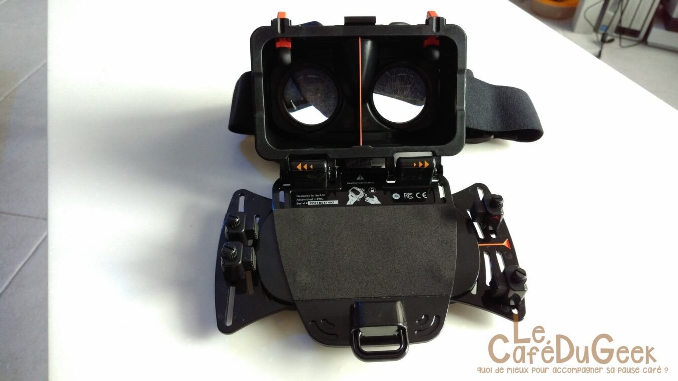 Le Freefly VR a été pensé pour offrir à l’utilisateur une grande facilité dans la mise en place du téléphone. En effet, en ouvrant le casque on découvre l’emplacement smartphone. Celui-ci dispose de 4 réglettes sur les côtés pour fixer le smartphone et ne pas s’inquiéter de son maintien.