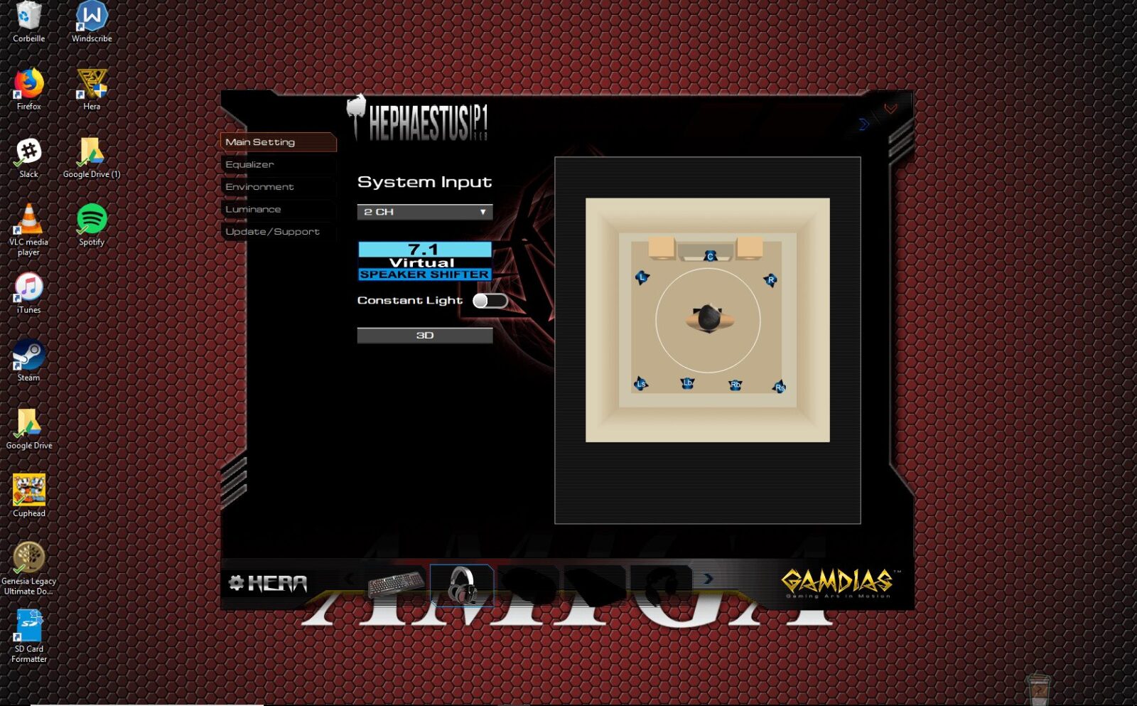 L’hephaestus P1 est un casque 7.1, pour profiter au mieux de cette fonctionnalité. Il faut une partie software. Hera est la solution de la marque, l’ensemble du matériel estampillé Gamdias est piloté via cette application PC.