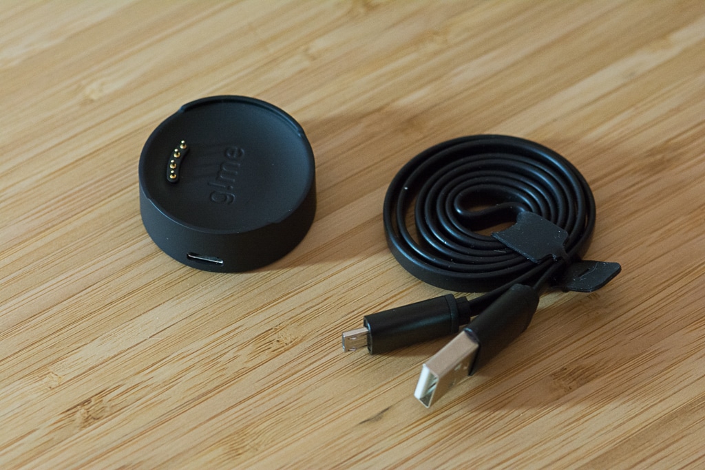 Deux boites vous sont livrées ensemble, l’une contient la montre, un câble micro USB plat pour éviter l’emmêlement, un support de recharge, une courte notice d’utilisation en plus d’un feuillet à propos de la garantie du produit.