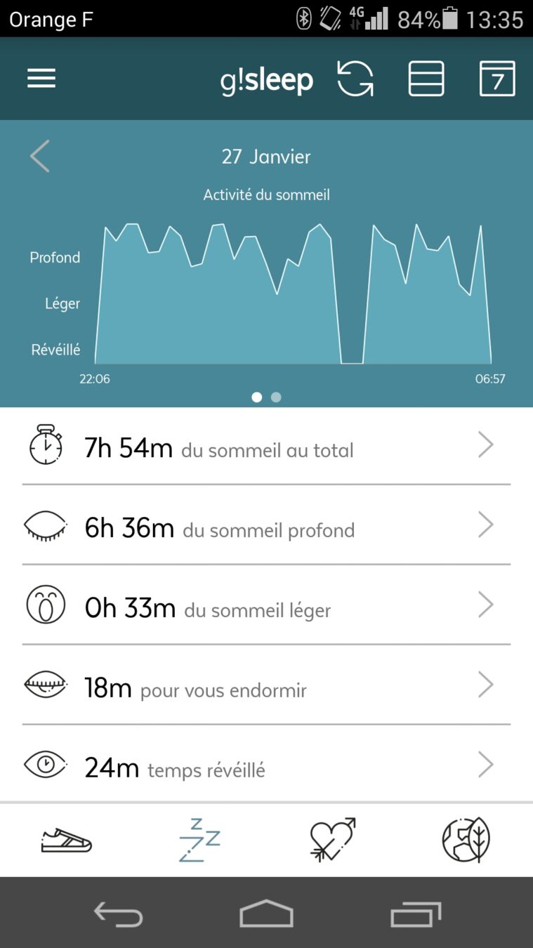 g!sleep mesure la qualité du sommeil, durée, sommeil profond et léger et nombre de réveils