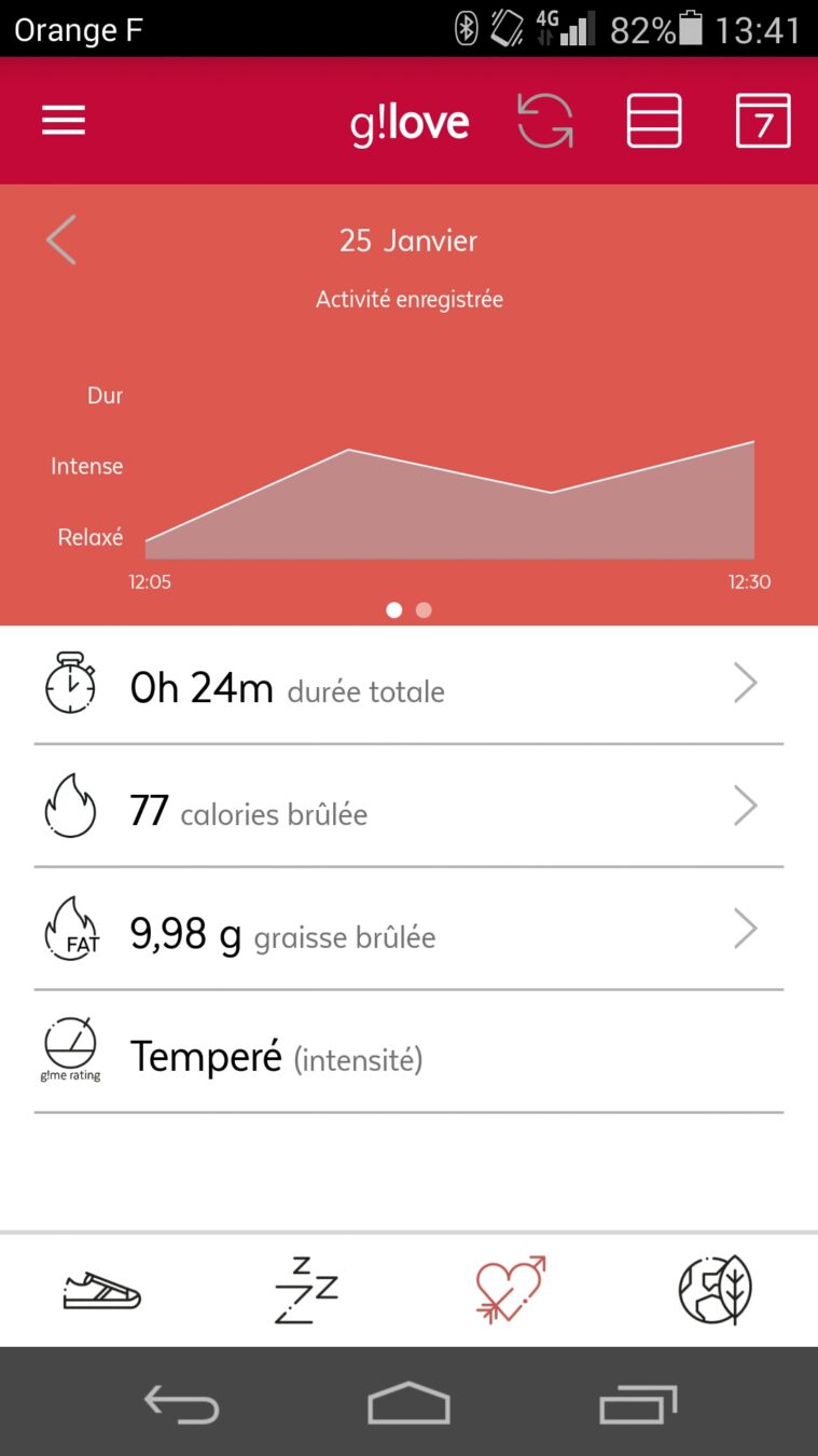 g!love mesure l’activité sexuelle, durée, heure de début et de fin, calories brûlées et intensité