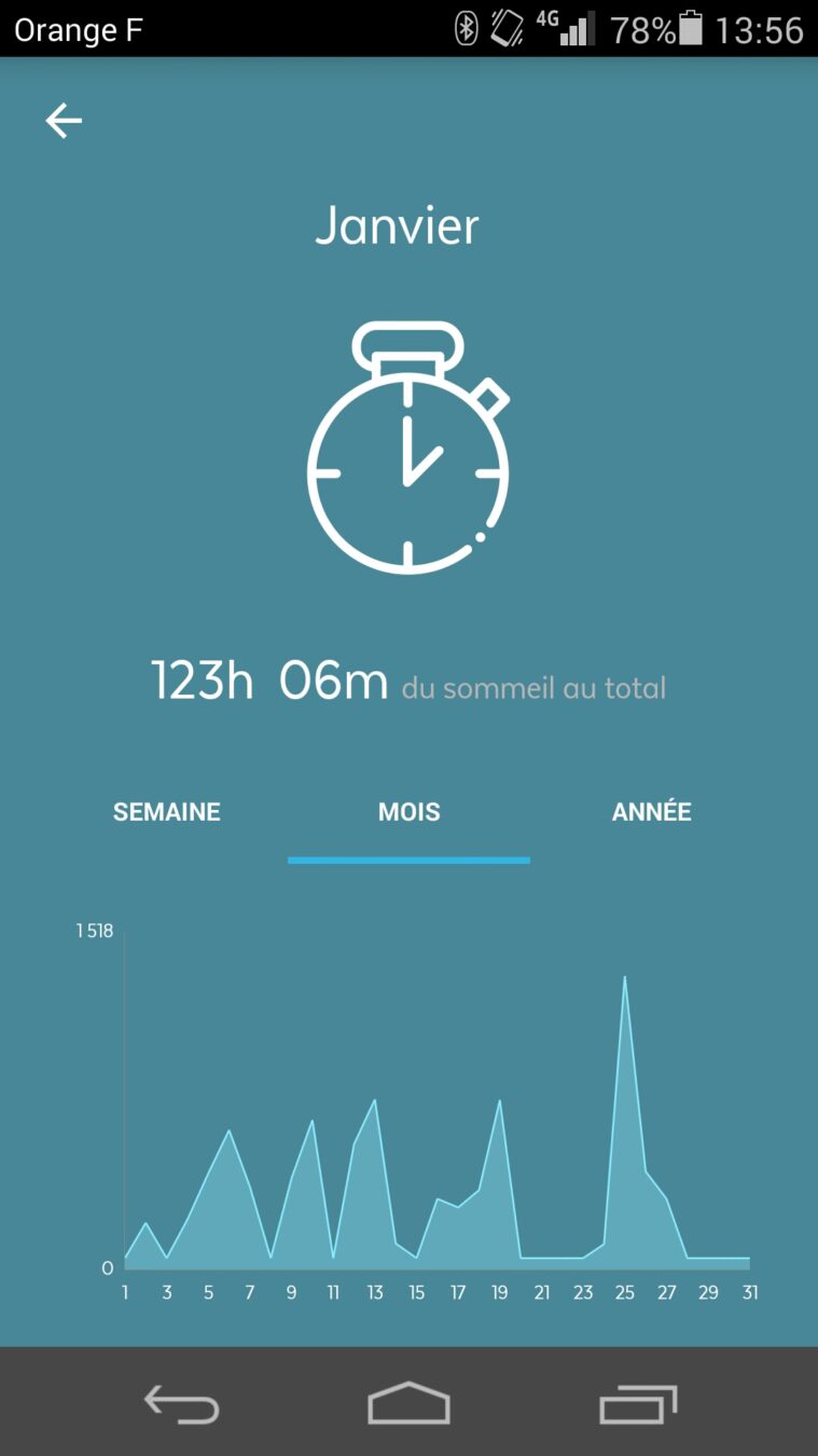Les données livrées semblent cohérente, en mode fitness et sleep, on retrouve des graphiques détaillés pour chaque différente donnée et sur une durée déterminée.