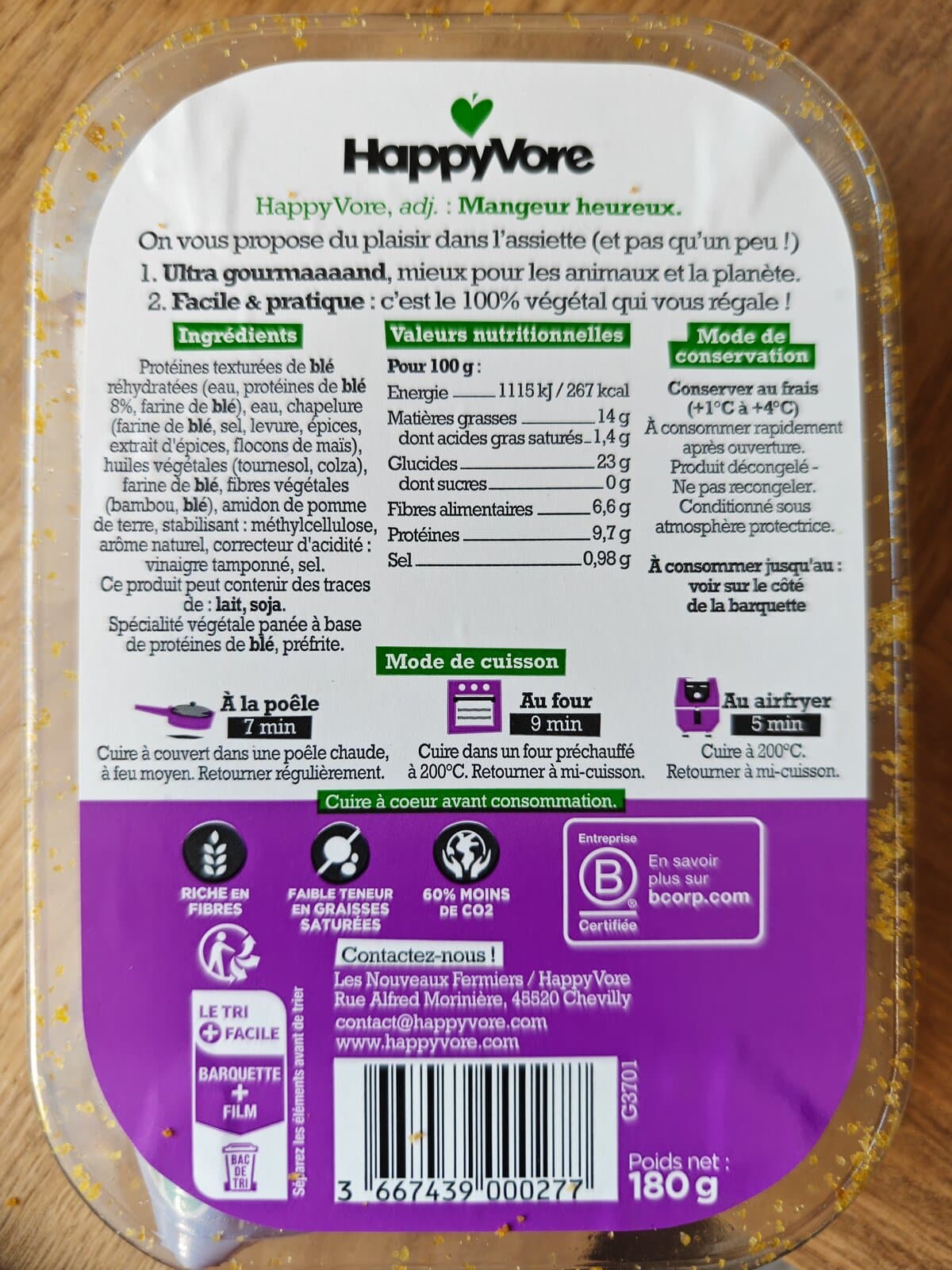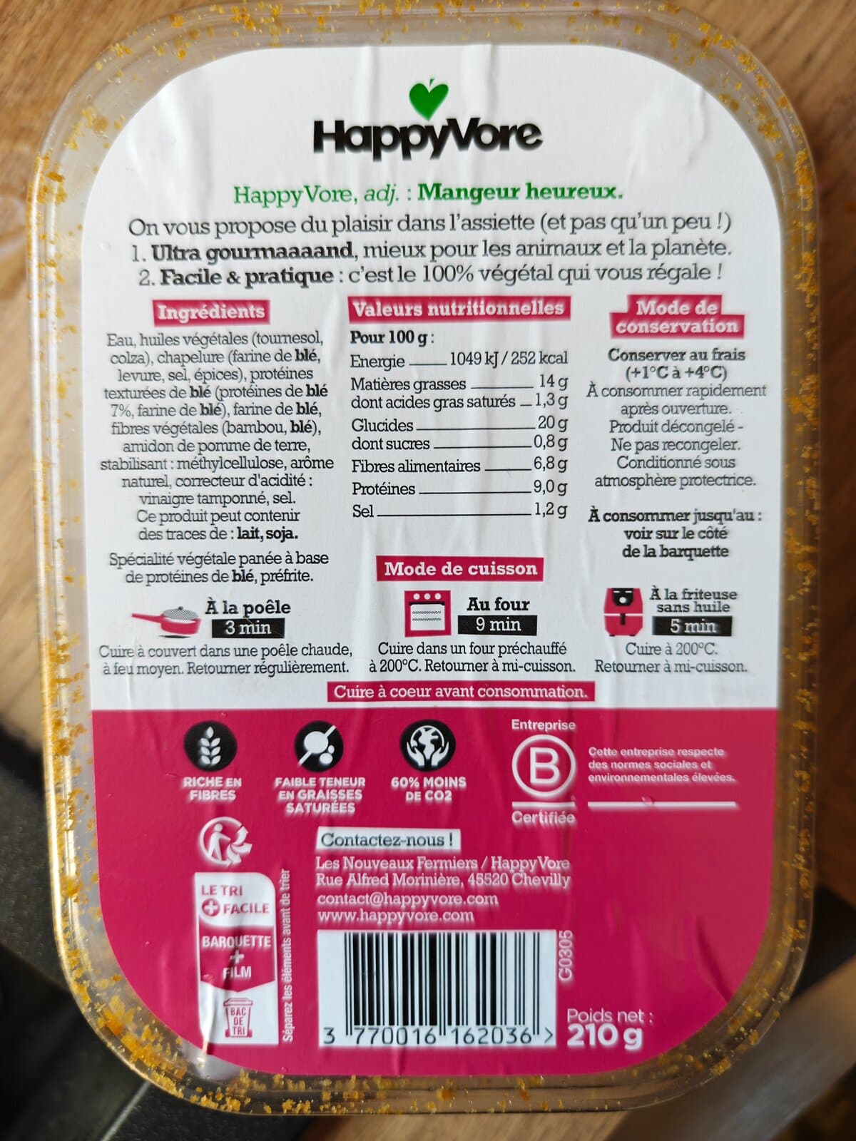 Je vais même plus loin. Comparés aux nuggets vegan d’une célèbre chaîne de fast-food comme McDo, les HappyVore sont meilleurs. La texture est plus réaliste. Le goût est plus équilibré. Ainsi, on ne ressent pas ce côté artificiel parfois présent ailleurs.