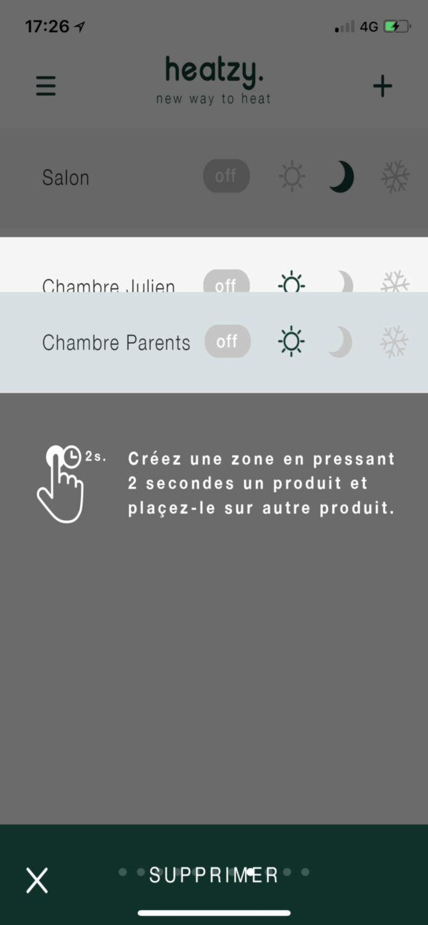 Heatzy Pilote permet ainsi de prendre le contrôle sur son chauffage électrique. Mais l’application propose encore bien mieux ! En effet, dans certaines pièces, il y a plus d’un radiateur. Alors on peut venir y connecter plusieurs boitiers. Ensuite, l’application prend le relai en créant une zone de vie qui comprendra tous les produits d’une pièce et automatisera les fonctions en groupe. Ainsi, si on démarre le chauffage dans une pièce, ce sont tous les chauffages de la pièce qui fonctionneront.