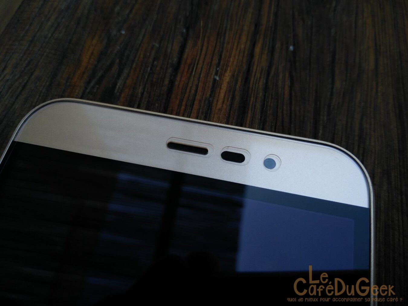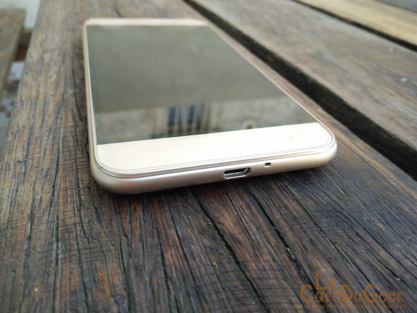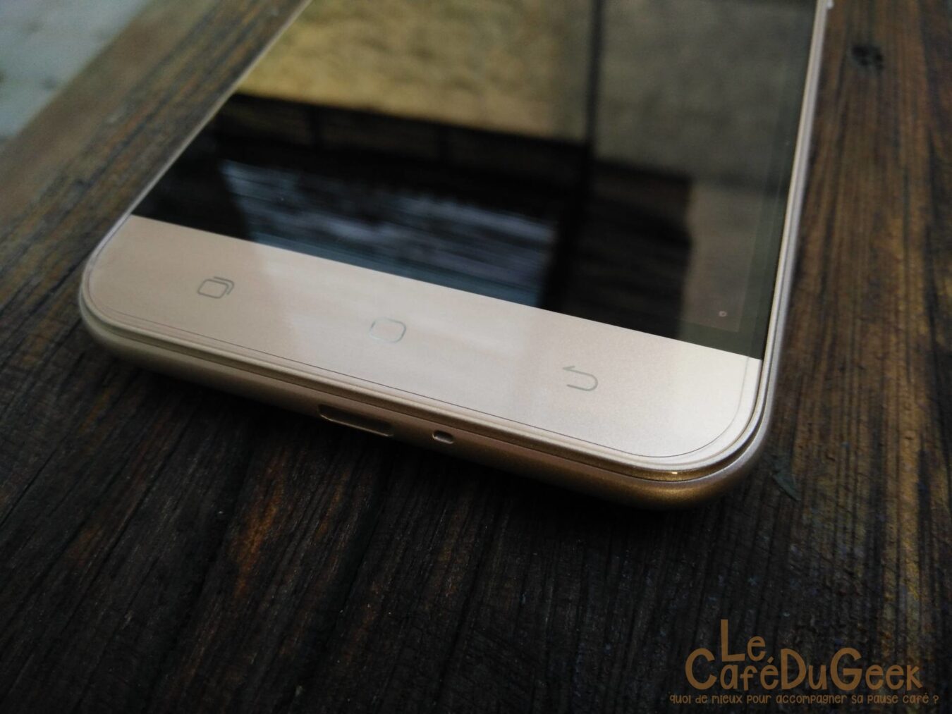 Le design est surement un des seuls points forts de ce téléphone. Son écran de 5″, d’une résolution HD, est correct sans être transcendant. La taille est bonne et la prise en main est très agréable. Les boutons de gestion de volume et Power, présent sur la tranche droite du téléphone, sont accessibles très facilement. Le rechargement se fait via le port µUSB, situé en bas du téléphone. Ce dernier est situé à côté du micro principal. La trappe SIM, située sur la gauche, offre la possibilité d’y loger 2 cartes SIM ou une carte SIM ainsi qu’un carte SD jusqu’à 128Go. Les boutons de navigation sont présents sur la partie inférieure de l’écran.