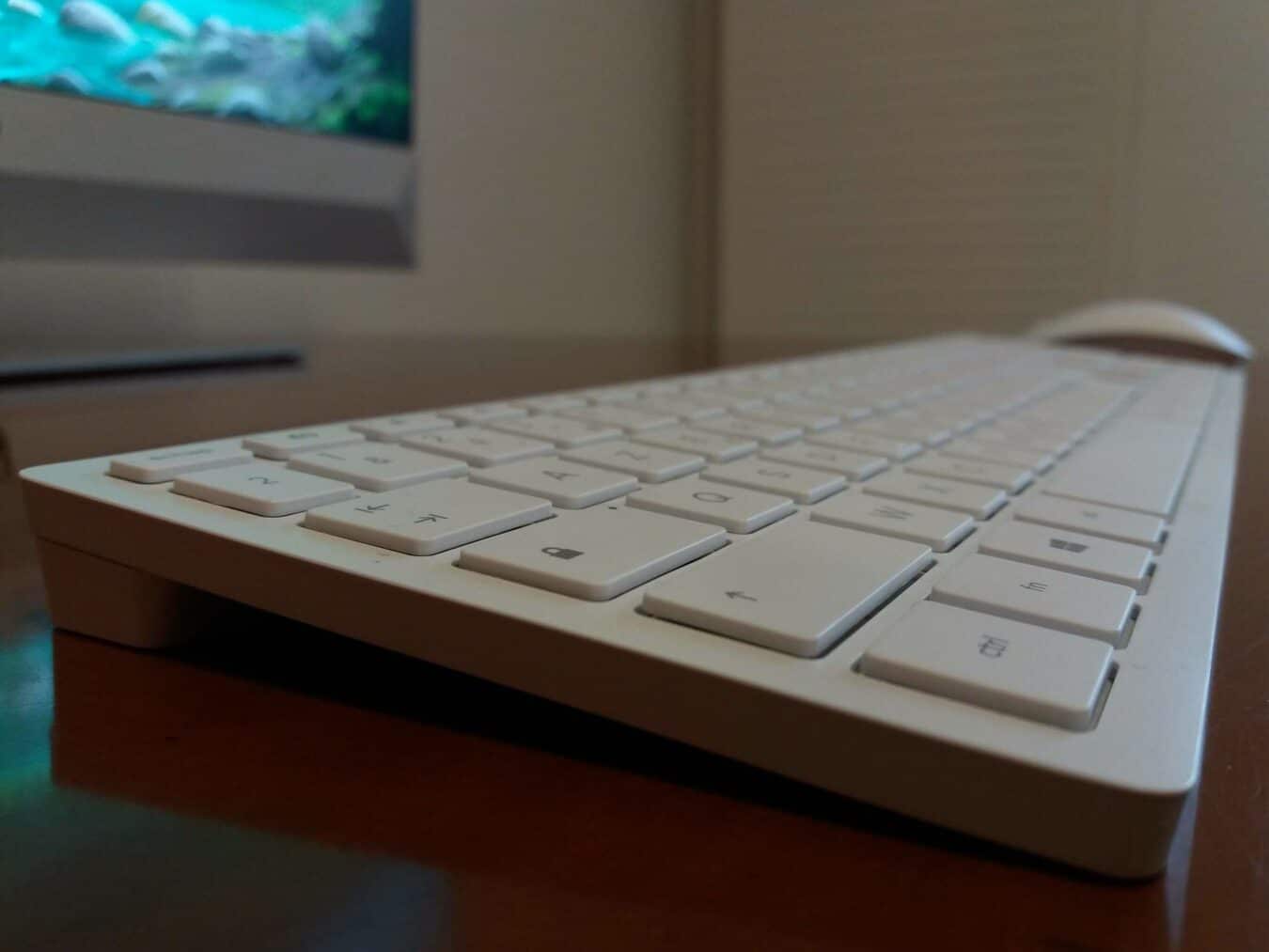 La marque nous fournit également un pack clavier/souris sans fil. On retrouve une certaine inspiration des produits Apple. Le clavier est très agréable à l’utilisation même si un peu bruyant et peu original. Cependant, la souris est difficile à utiliser pour de grandes mains et peu précise avec des clics bruyants dignes des souris milieu/bas de gamme.