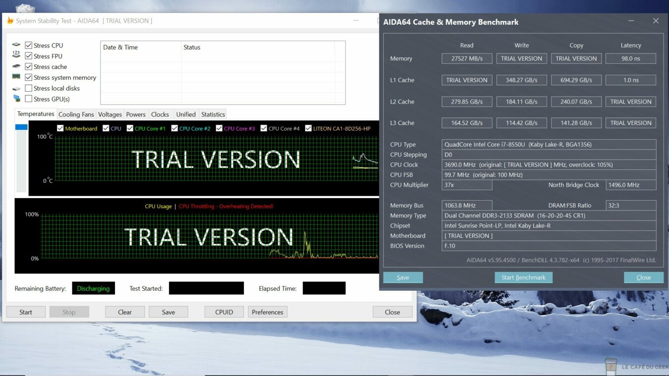 L’appareil couvre l’ensemble des normes WiFi existantes, l’accroche réseau est très rapide et stable. Je n’ai décelé aucun problème même pendant du jeu en ligne. Même constat au niveau du Bluetooth. Pourvu de la norme 4.2, le PC est véloce en termes de transfert. Je n’ai malheureusement pas d’outils à ma disposition pour le quantifier. Je ne fais que comparer par rapport à mon ordinateur personnel. Le transfert est environ 2 fois plus rapide sur un même fichier.
