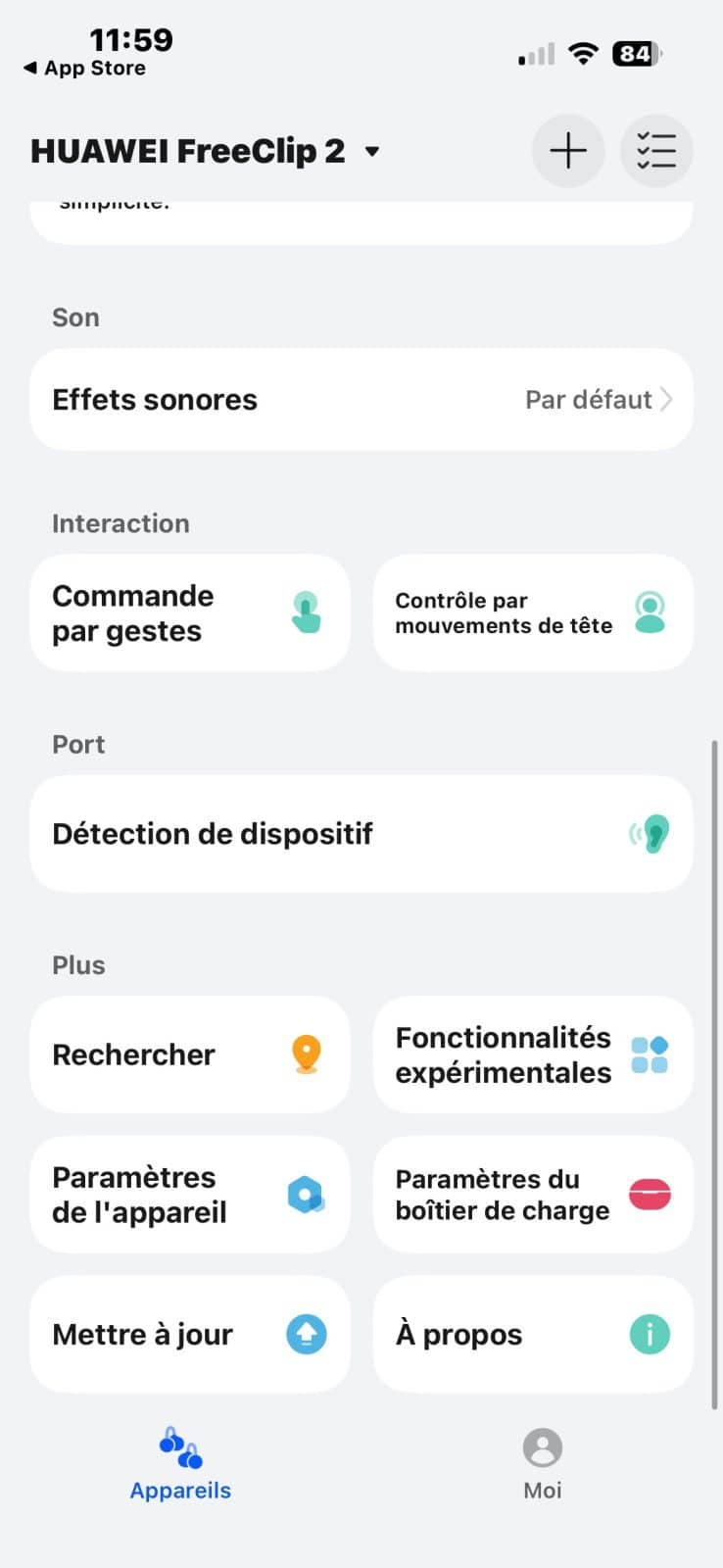 Les Huawei FreeClip 2 s’appuient sur l’application Huawei Audio pour offrir une expérience complète et personnalisable. L’interface est claire, bien structurée et permet une prise en main rapide, aussi bien sur Android que sur iOS.