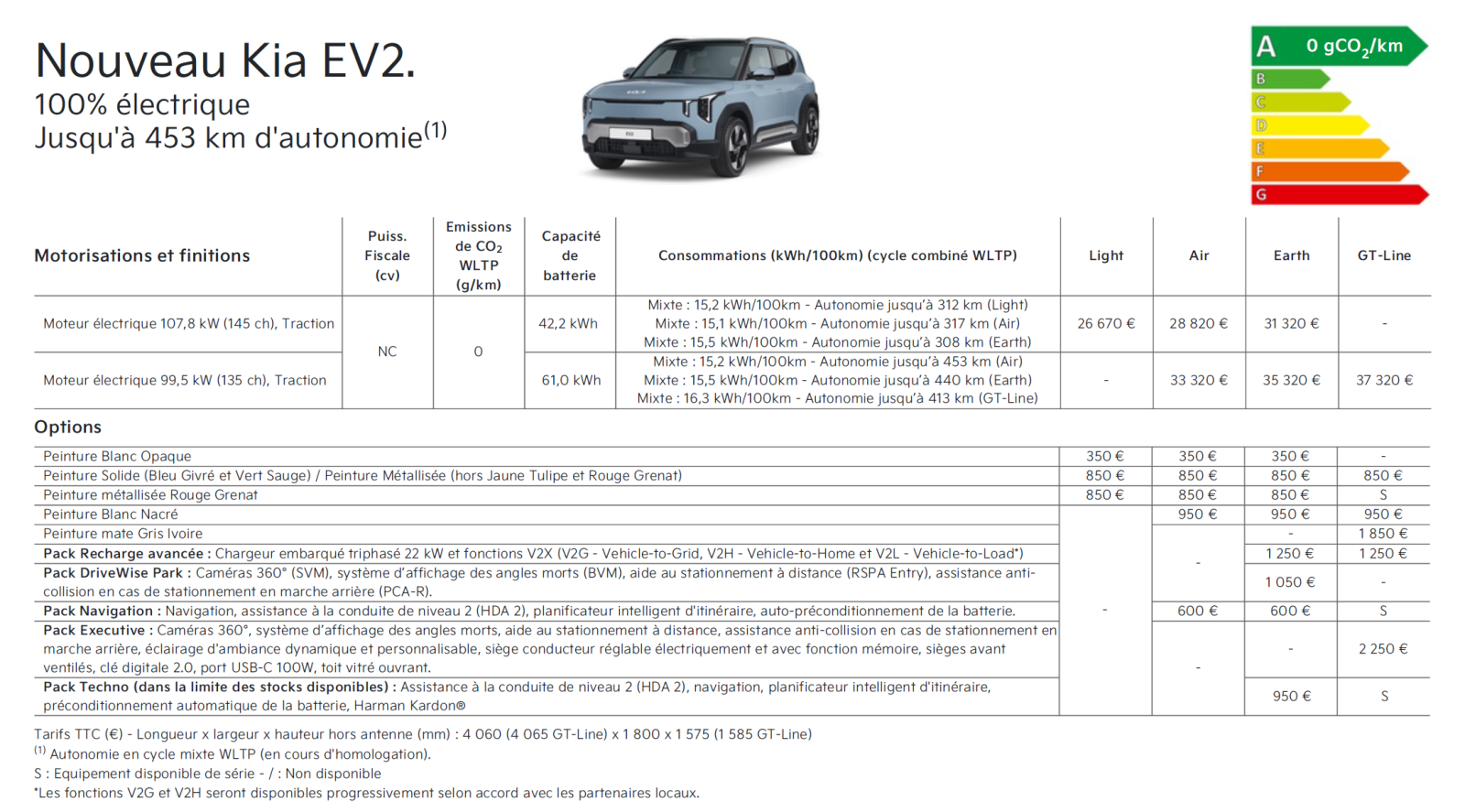 Quelles sont les caractéristiques techniques de la Kia EV2 ?