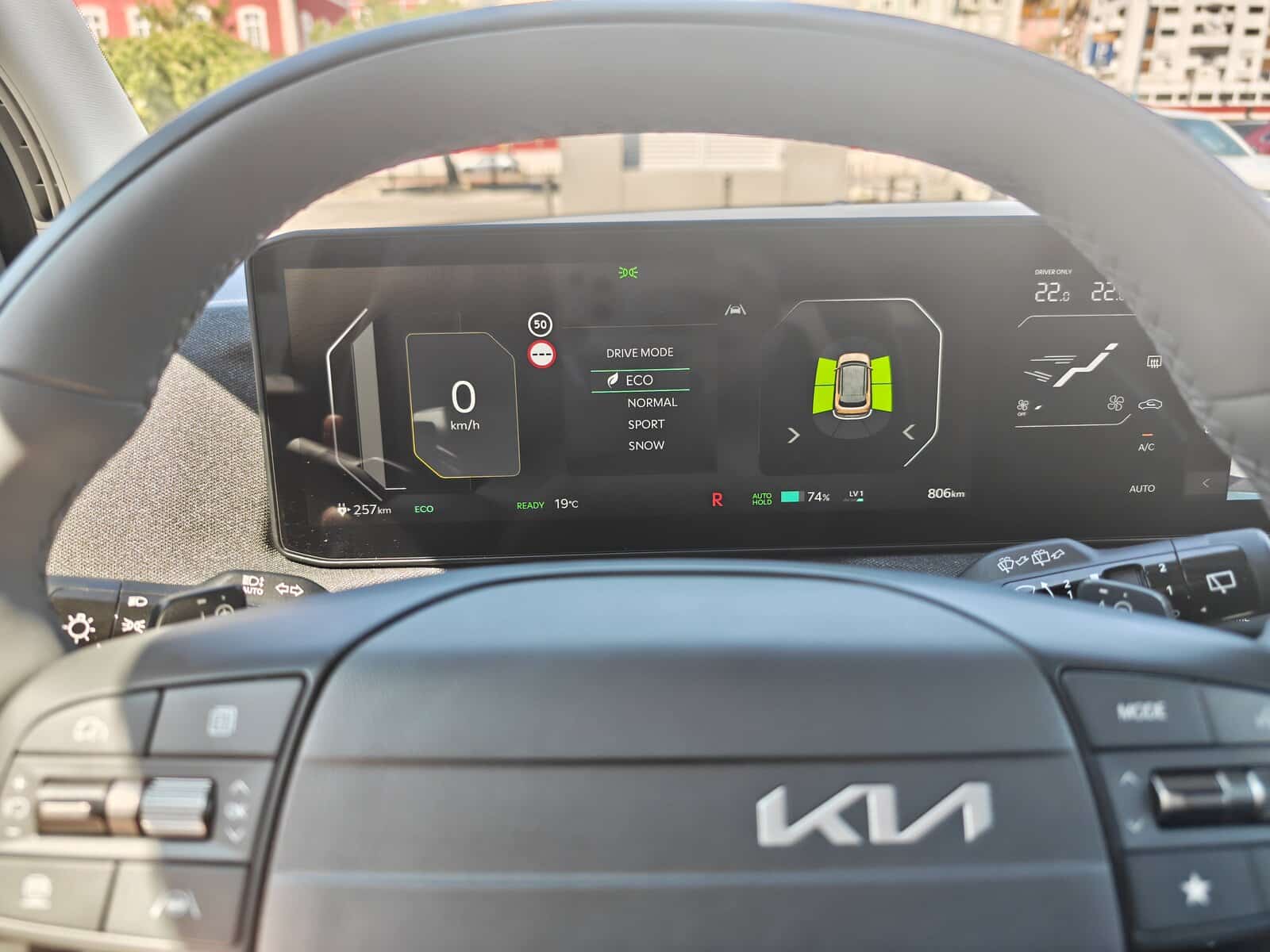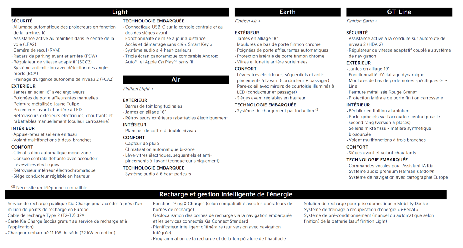Véhicule prêté deux jours par KIA à l’occasion des essais presse européens. Aucun droit de regard de la marque sur cet article. Essai réalisé sur deux jours et environ 350 km : 70 % ville, 40 % départementales, batterie pleine au départ. Le véhicule a été utilisé en conditions réelles, avec trafic dense et stationnements compliqués.