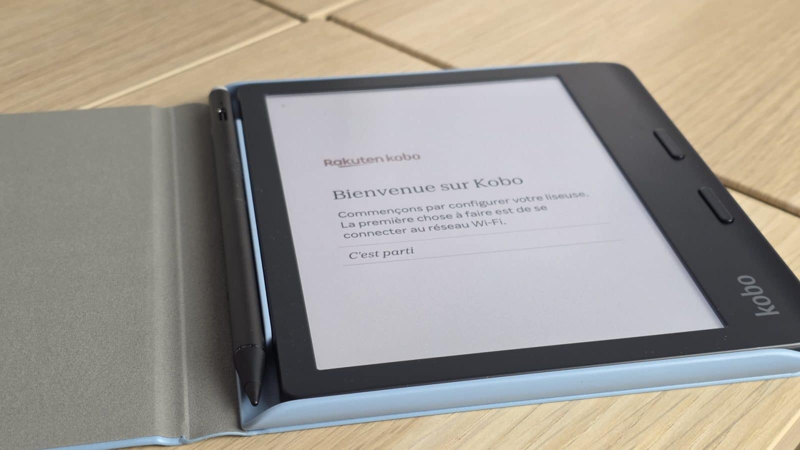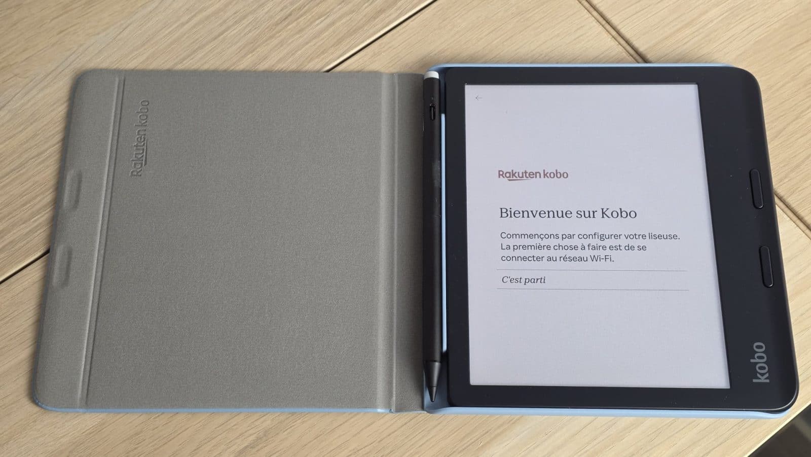 L’unboxing de la Kobo Libra Colour est sobre, et surtout très clair sur le positionnement du produit. Dans la boîte, on retrouve uniquement la liseuse et un câble USB-C pour la recharge. Aucun adaptateur secteur, aucun accessoire supplémentaire. Le stylet, la book cover et la télécommande sont vendus séparément et ne font pas partie du bundle standard. C’est cohérent avec le marché des liseuses, mais cela mérite d’être précisé, surtout au vu de la communication autour de l’annotation et de l’écriture manuscrite.