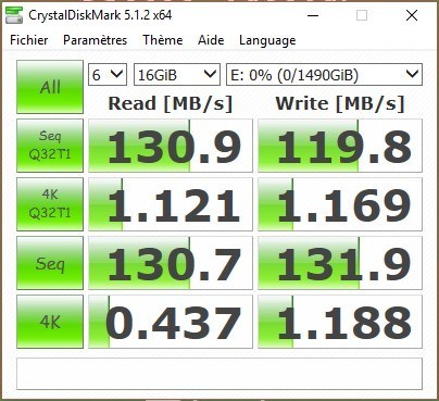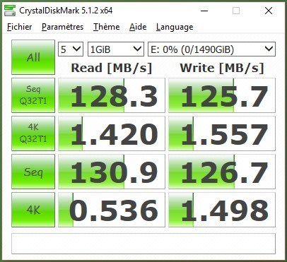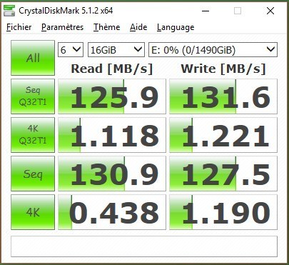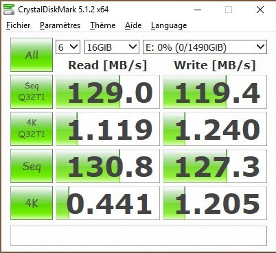 On observe d’après nos tests, le fait que le disque dur externe soit branché à votre ordinateur sur un port USB-C ou USB-A en version 3.0 ou 3.1, on obtient des résultats de performances qui ne varient que très peu. Pour un disque dur à plateaux au format 2,5 pouces et bénéficiant d’une vitesse de rotation de 5400 tours/min, on note des débits très rapides, de très bonnes performances ! On vous laisse juger avec les aperçus de nos tests.