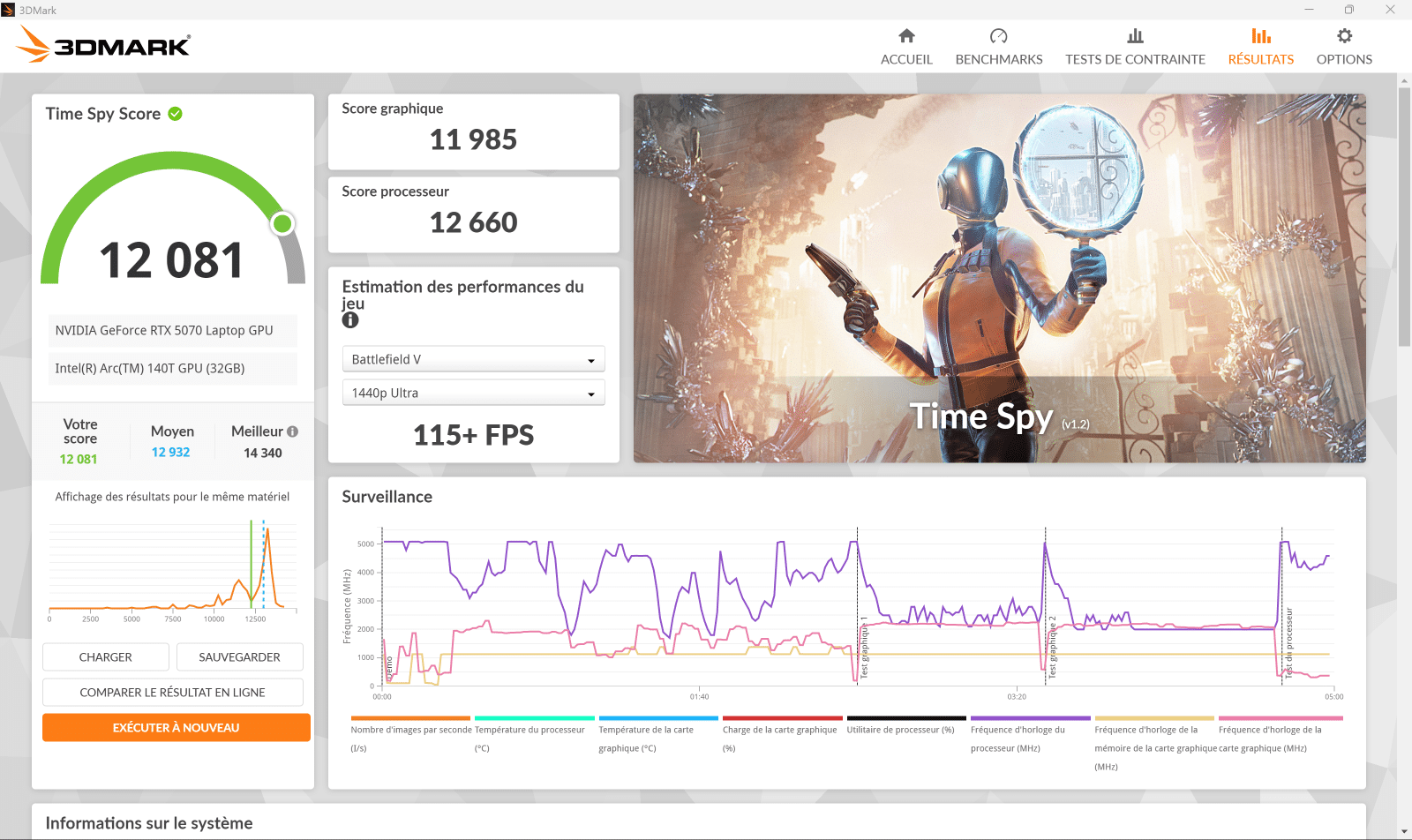 Au niveau des performances brutes, on remarque que le Yoga Pro 9i est légèrement en dessous de la moyenne, selon les résultats de 3D Mark. En cause probable, la température du processeur qui a tendance à augmenter pas mal en charge. En effet, j’ai pu remarquer des températures maximales qui grimpent à 100°C. Dans ces cas-là, le processeur est obligé de réduire ses performances afin d’éviter une chauffe trop élevée. Cela pourra être gênant lors de longues sessions sur des jeux gourmands ou des applications professionnelles vraiment demandeuses en ressources.