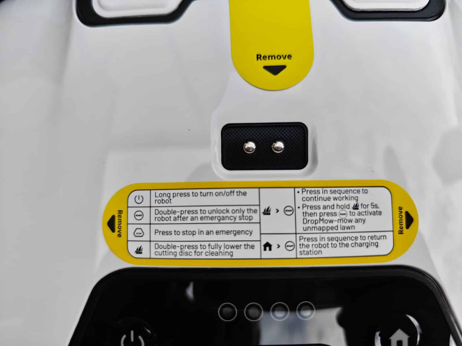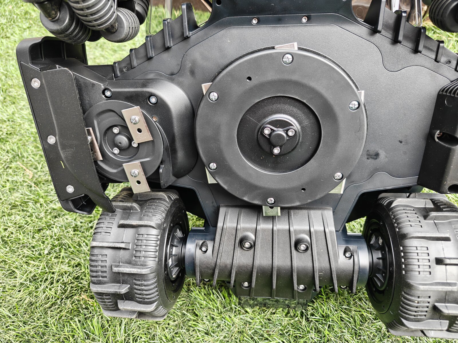 Le vrai changement vient du système de coupe. En effet, Mammotion ajoute un coupe bordures à lames, intégré sur le côté. Cela permet théoriquement de s’approcher davantage des bordures. Pourtant, dans les faits, il ne colle pas parfaitement aux murs ou aux obstacles. en effet pour des questions de sécurité évidentes ce n’est pas possible. Des lames de tondeuses affutées comme des rasoir serait trop dangereux pour les humains, les animaux et s’abimeraient en frottant sur les obstacles. Cela reste quand même très près du bord, il n’y a que l’épaisseur du carter de protection entre la lame et le bord extérieur.
