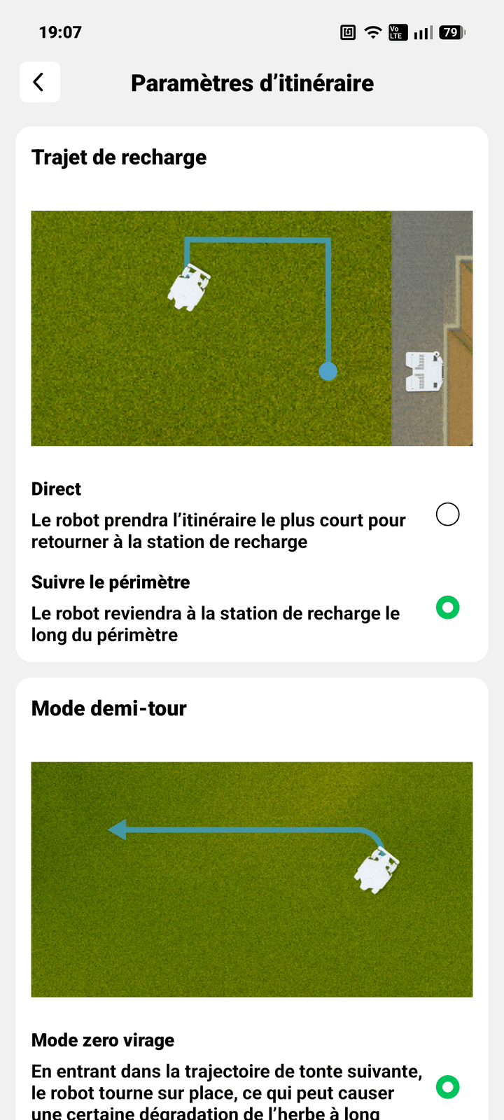 Sur le terrain, ce robot impressionne. Dès les premiers cycles, il adapte sa trajectoire. Ainsi, il évite les zones avec des obstacles comme un animal ou un jouet qui traine par terre. Le rendu est propre, homogène et régulier. Il est même possible de dessiner un modèle pré enregistré ou personnalisé.