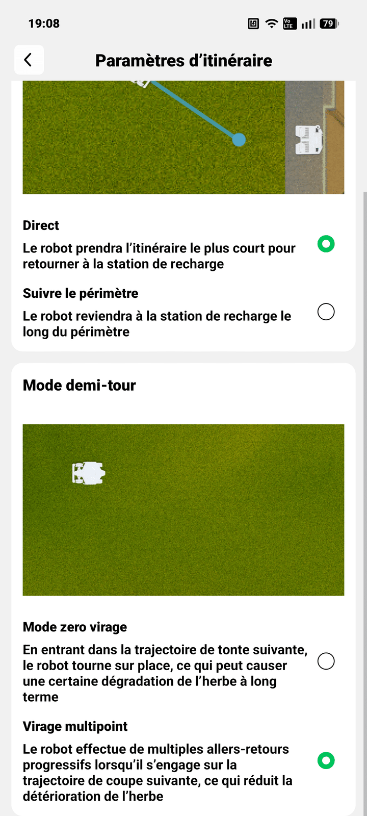 La cartographie peut se faire automatiquement ou manuellement. En pratique, le mode automatique fonctionne bien, mais le manuel reste plus précis. C’est le cas notamment pour la gestion de la coupe des bordures. En effet en mode auto le robot aura plus tendance à s’écarter de la bordure ou à ne pas faire comme vous l’auriez souhaitez. De plus, les mises à jour améliorent régulièrement les performances.