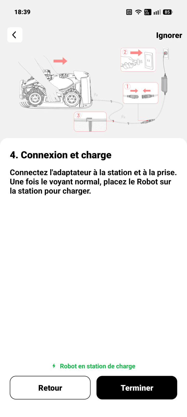 L’ergonomie reste excellente. Par exemple, les boutons sont accessibles, et le robot reste lisible même en extérieur. De plus, la prise en main est rapide, même sans expérience. Enfin, la station se montre compacte, ce qui facilite son intégration dans le jardin.