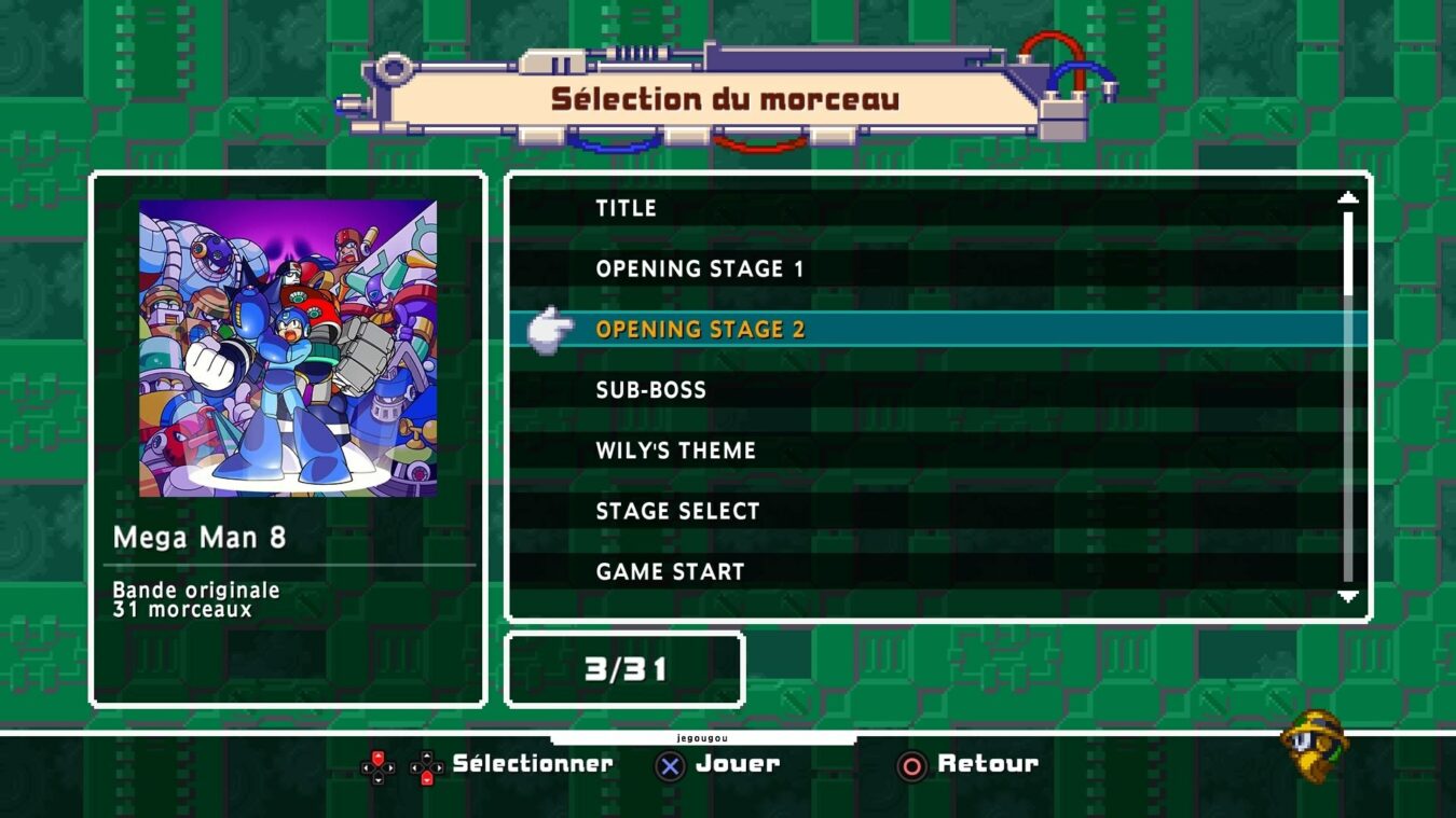 Megaman collection legacy 2 offre d’autres sympathiques bonus. Une galerie est présente, elle est détaillée par épisode. Un Jukebox de la B.O est disponible, les amoureux de musique Chiptune pourront en profiter.