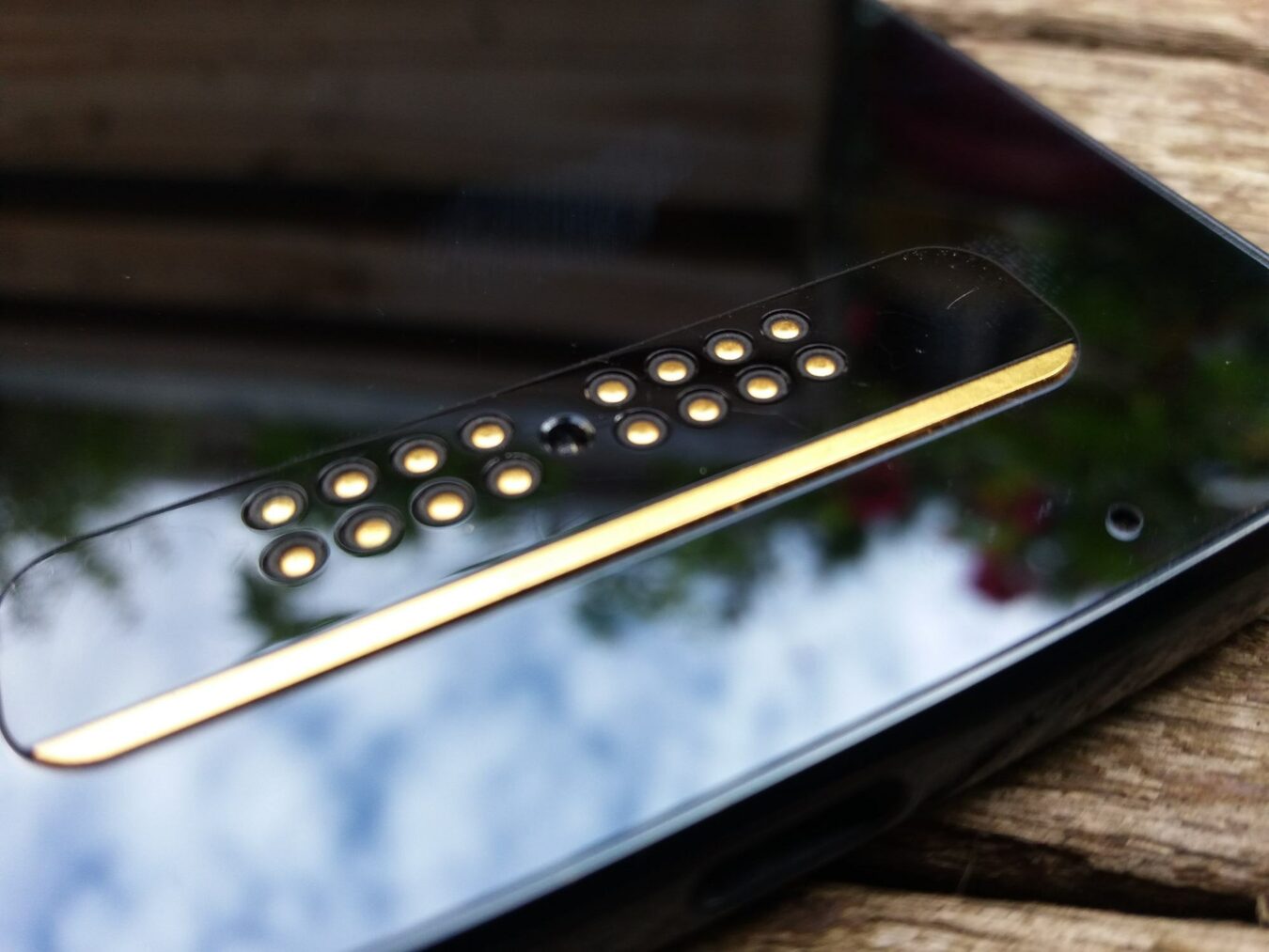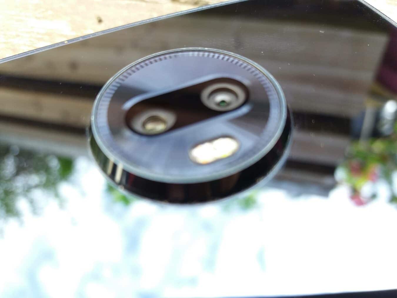 Contrairement à de nombreuses marques, Motorola n’a pas cédé à la tendance de l’encoche et garde donc un design avec des bordures bien présentes. Sur l’arrière, nous retrouvons le double objectif photo placé au-dessus du flash led. Celui-ci dépasse du smartphone ce qui rend le smartphone bancal lorsque posé sur une table, cela peut être gênant à l’utilisation. Sur la partie inférieure nous retrouvons les pins de connexion des différents modules s’intégrant bien. Le dos en verre renvoi une image premium mais possède le défaut de garder les traces de doigts, malgré ce dis en verre le celui-ci n’intègre pas la recharge sans fils.