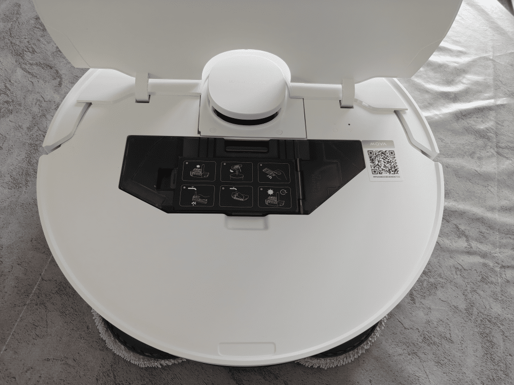À première vue, le MOVA E40 Ultra ne cherche pas à impressionner par son design. Le robot est sobre, discret, avec une coque uniforme et un LiDAR trônant au sommet. Il passe presque inaperçu. Ce n’est pas le cas de sa station, qui attire immédiatement l’œil. Elle est grande, profonde, haute… très loin des bases minimalistes que l’on rencontre chez certains concurrents. Ce gabarit imposant s’explique rapidement : MOVA y a logé tout ce qu’on peut attendre d’un système automatisé moderne. La station aspire la poussière, lave les serpillères, les sèche à l’air chaud et abrite deux grands réservoirs pour l’eau propre et l’eau sale. Autrement dit, elle se comporte comme un petit centre de maintenance autonome. Mais cela demande de l’espace, et il faut clairement prévoir un emplacement dédié.