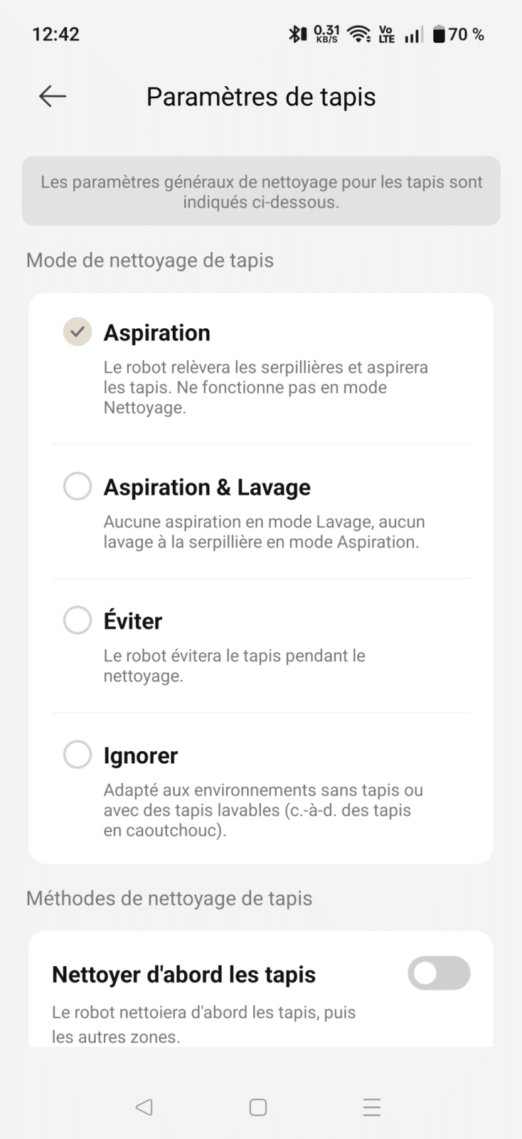 En revanche, l’absence de caméra signifie qu’il n’identifie pas les petits objets au sol. S’il rencontre un câble ou un jouet oublié, il risque de le pousser ou de l’absorber. Rien de dramatique, mais il faut garder un minimum d’ordre au sol pour que le robot reste performant.