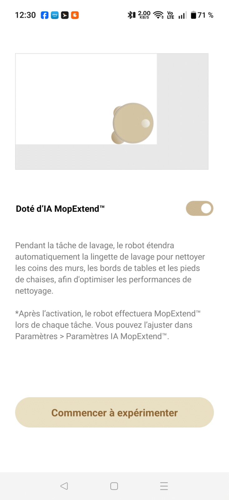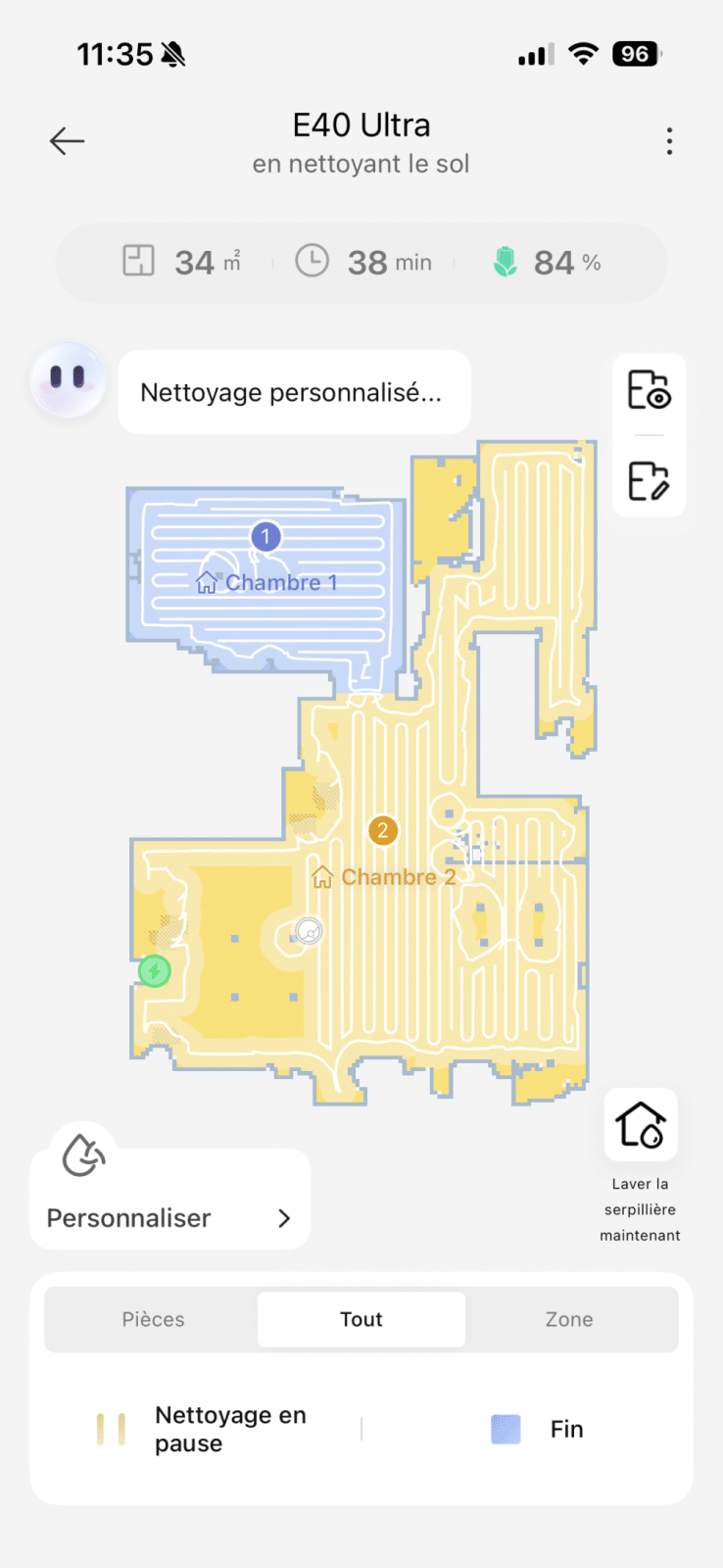 L’application joue un rôle clé dans l’expérience et MOVA a bien travaillé le sujet. L’interface est intuitive, les cartes chargent rapidement et les réglages sont simples à comprendre. On peut ajuster l’aspiration pièce par pièce, choisir le nombre de passages, modifier l’intensité du lavage, ou encore surveiller l’état des consommables. On navigue dans l’application avec la sensation d’avoir un produit mature entre les mains, ce qui n’est pas toujours le cas des marques émergentes.