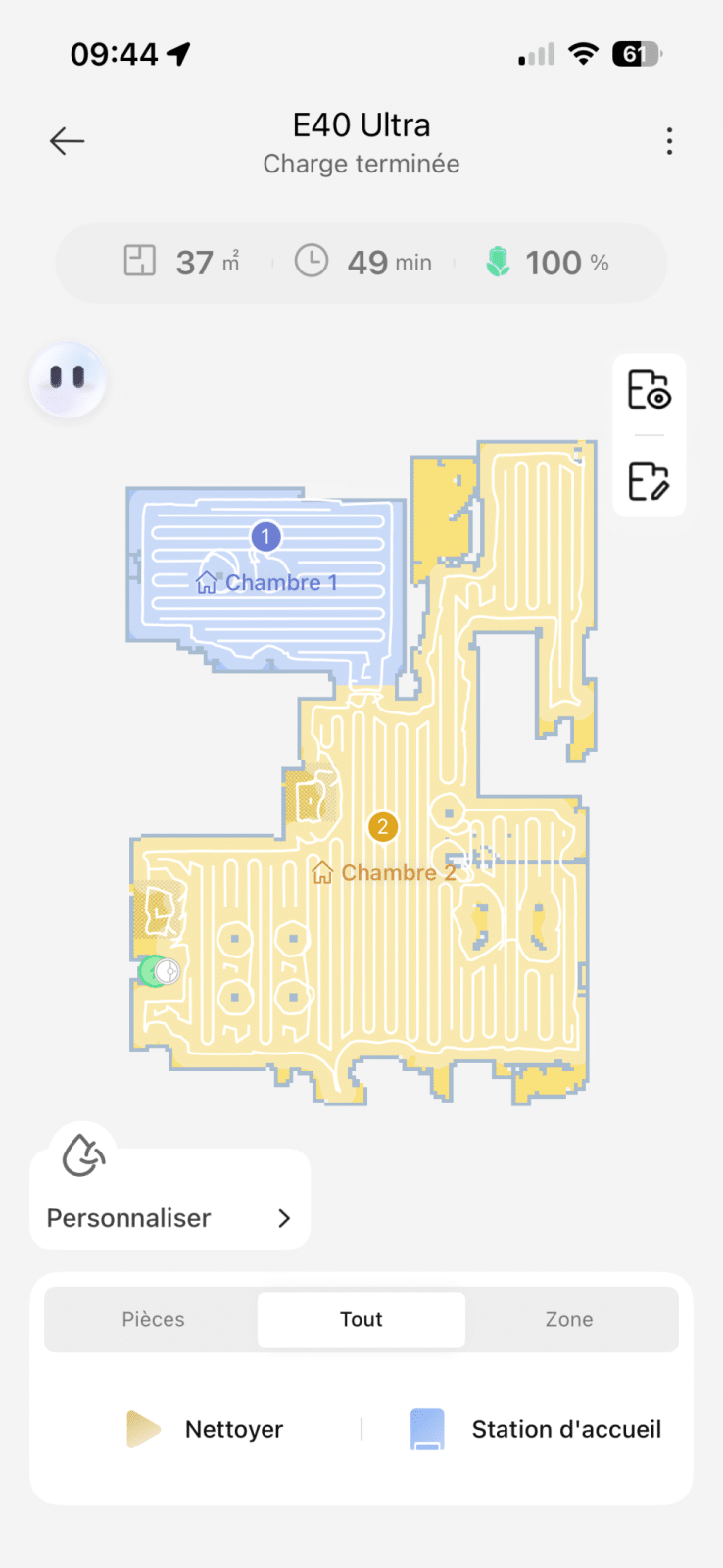 L’application MOVA joue ici un rôle essentiel. L’appairage est rapide, la connexion stable, et la cartographie initiale se fait sans accroc. Le LiDAR scanne minutieusement le logement et dessine une carte très fidèle, que l’on peut facilement modifier en fusionnant des pièces, en séparant d’autres, ou en définissant des zones interdites. Le logiciel est clair, moderne, bien pensé et suffisamment complet pour rivaliser avec les applications des acteurs historiques du secteur.