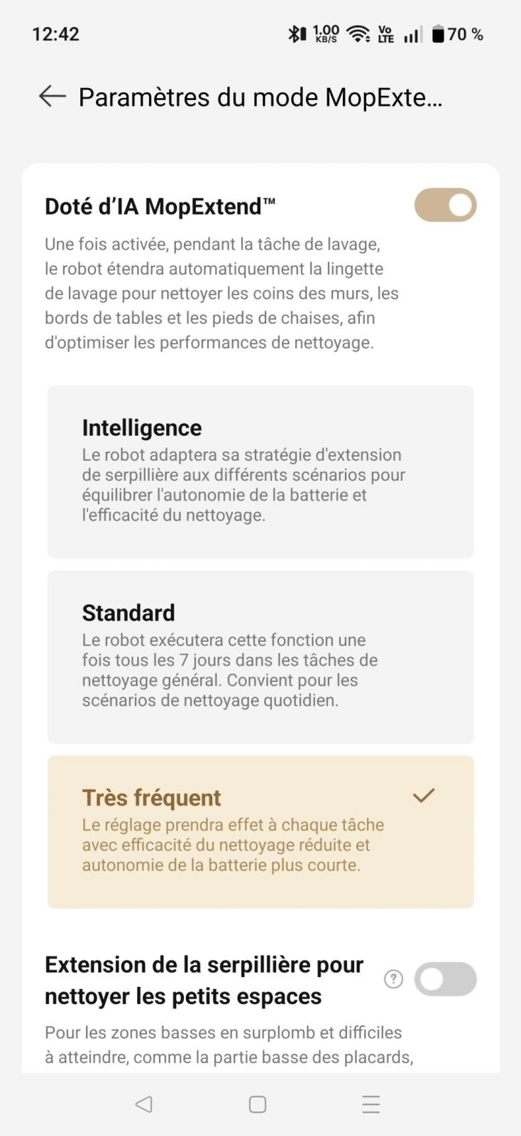 En revanche, l’absence de caméra signifie qu’il n’identifie pas les petits objets au sol. S’il rencontre un câble ou un jouet oublié, il risque de le pousser ou de l’absorber. Rien de dramatique, mais il faut garder un minimum d’ordre au sol pour que le robot reste performant.