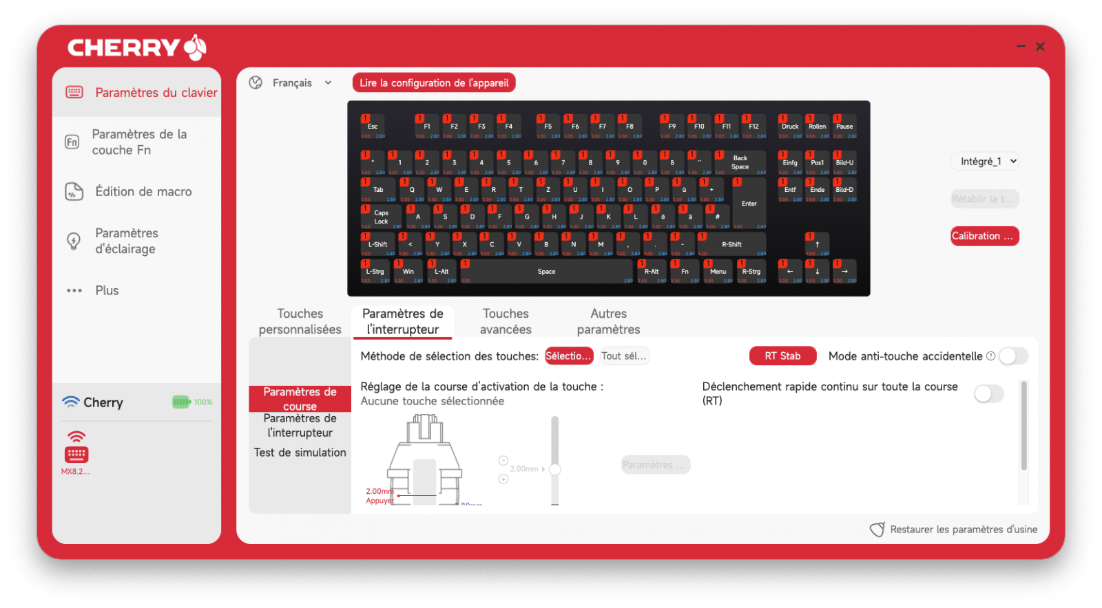 Le logiciel CHERRY MagCrate est une très bonne surprise. Il est clair, relativement intuitif, et surtout extrêmement complet. J’ai pu régler précisément les points d’activation des touches, créer des macros, gérer les profils, personnaliser l’éclairage RGB touche par touche… tout y est.