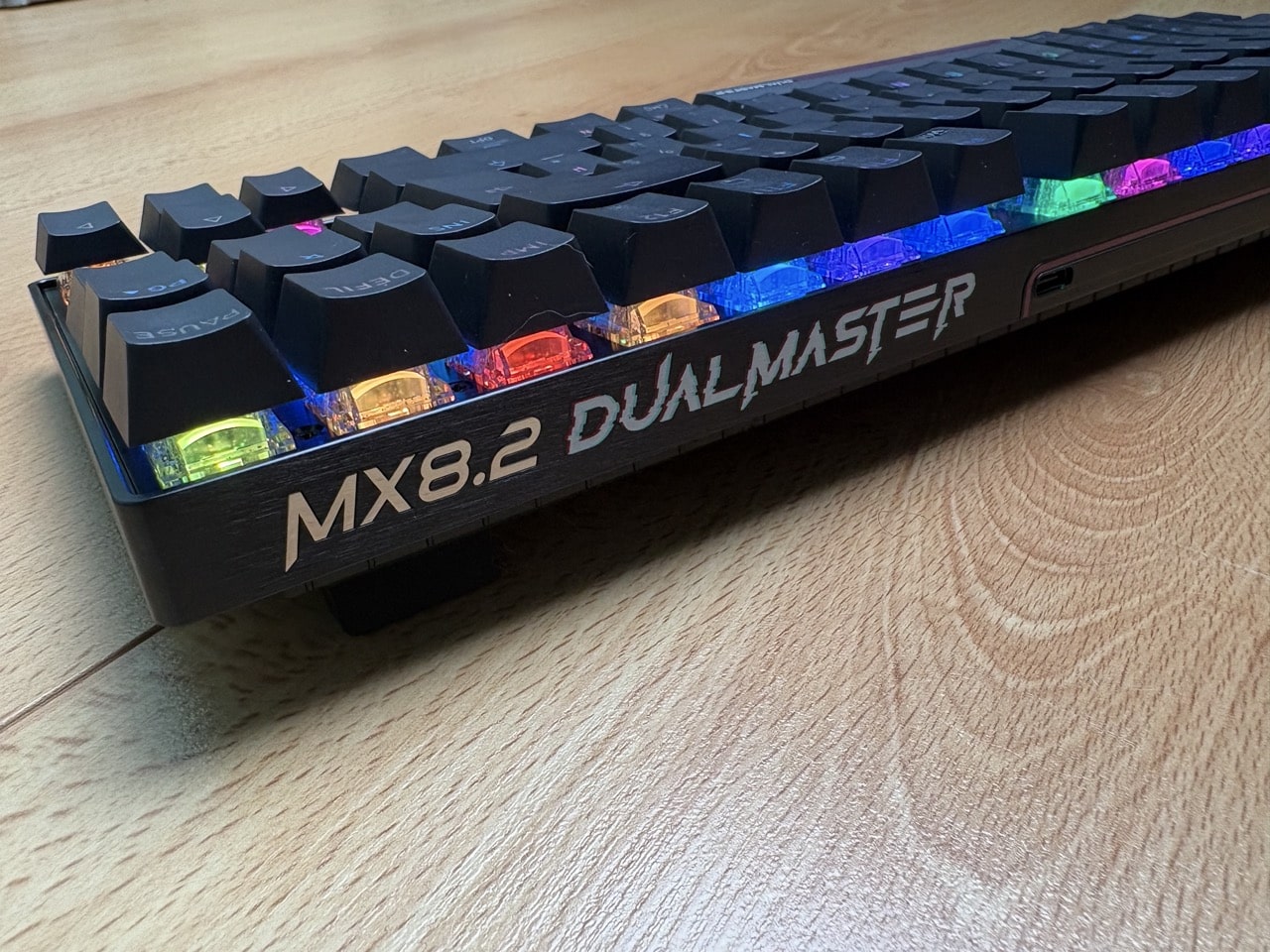 Dès l’ouverture de la boîte, le ton est donné. Le MX 8.2 Pro TMR Wireless respire le sérieux et le produit pensé pour durer. Le châssis en aluminium inspire immédiatement confiance : c’est rigide, dense, parfaitement assemblé. Aucun grincement, aucune flexion, même en appuyant volontairement comme un bourrin. On est clairement sur un clavier haut de gamme, et ça se sent dès les premières secondes.