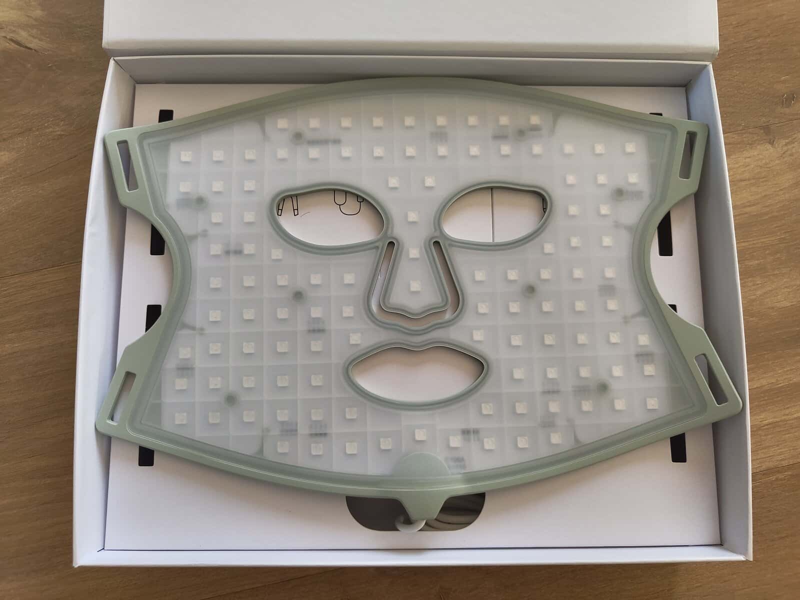 Le design, en revanche, ne passe pas inaperçu. Avec son allure futuriste, il évoque immédiatement un masque de science-fiction. Certains y verront même un clin d’œil amusant à Hannibal Lecter, ce qui prête à sourire lors des premières utilisations. Pourtant, ce choix esthétique n’est pas gratuit. Les lignes anguleuses servent à répartir efficacement les modules LED tout autour du visage. Ainsi, la lumière est diffusée de manière homogène, sans zones mortes.