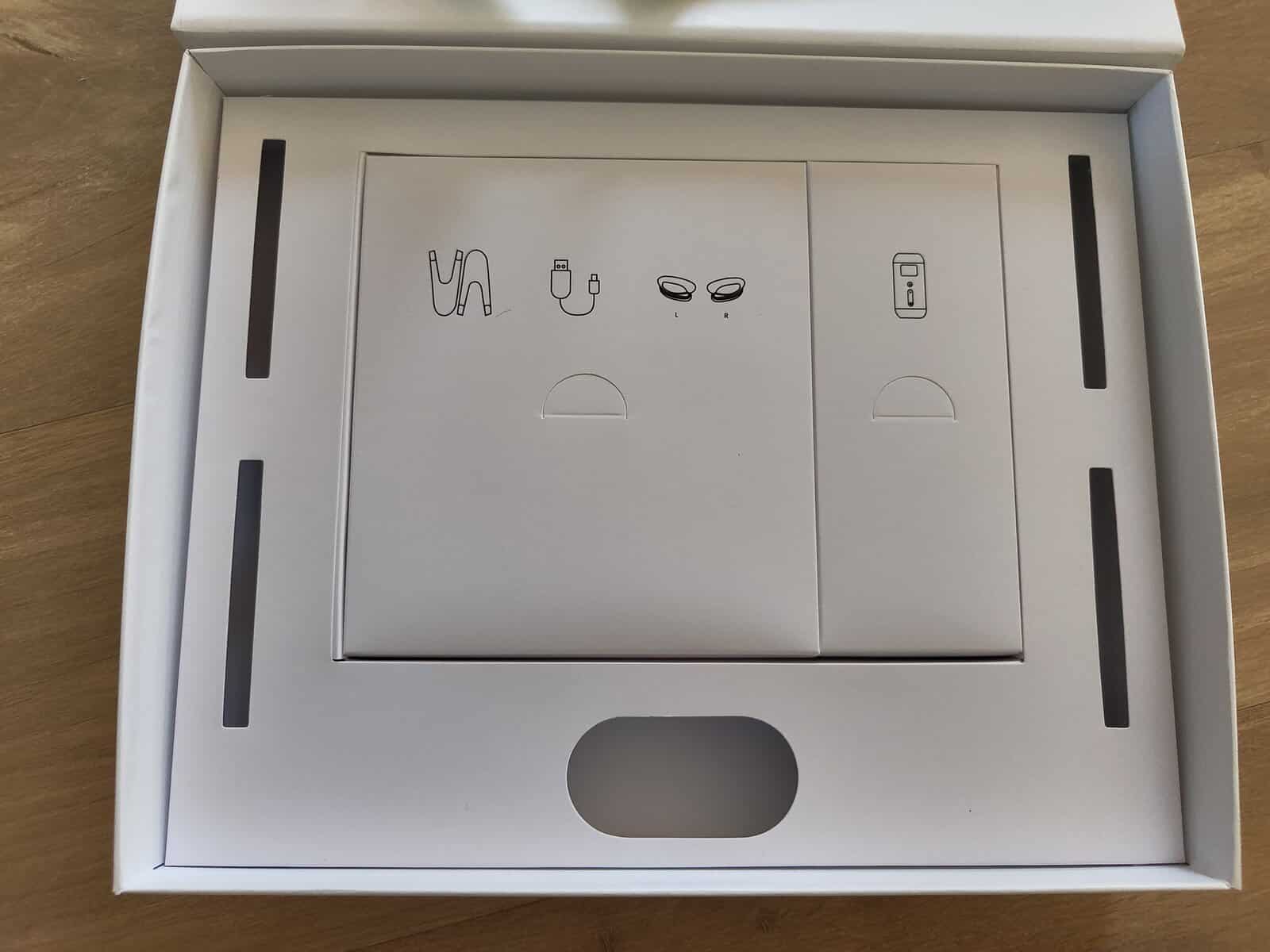 Dès l’ouverture de la boîte, Nanoleaf soigne son image. L’emballage est propre, bien organisé et inspire immédiatement confiance. À l’intérieur, le masque est soigneusement calé, accompagné de son câble de charge, d’une batterie intégrée et d’une notice claire. Rien de superflu, mais rien ne manque non plus. Cette sobriété renforce l’impression de produit pensé pour être utilisé régulièrement, sans friction inutile.
