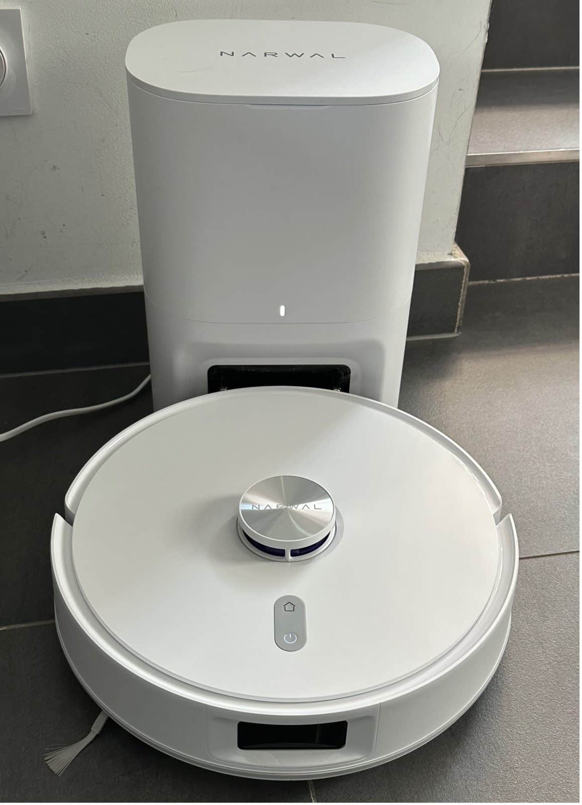 La station de base, bien que volumineuse, donne une impression de solidité et d’efficacité. On sent que Narwal a soigné la présentation pour rivaliser avec les grandes marques du secteur.