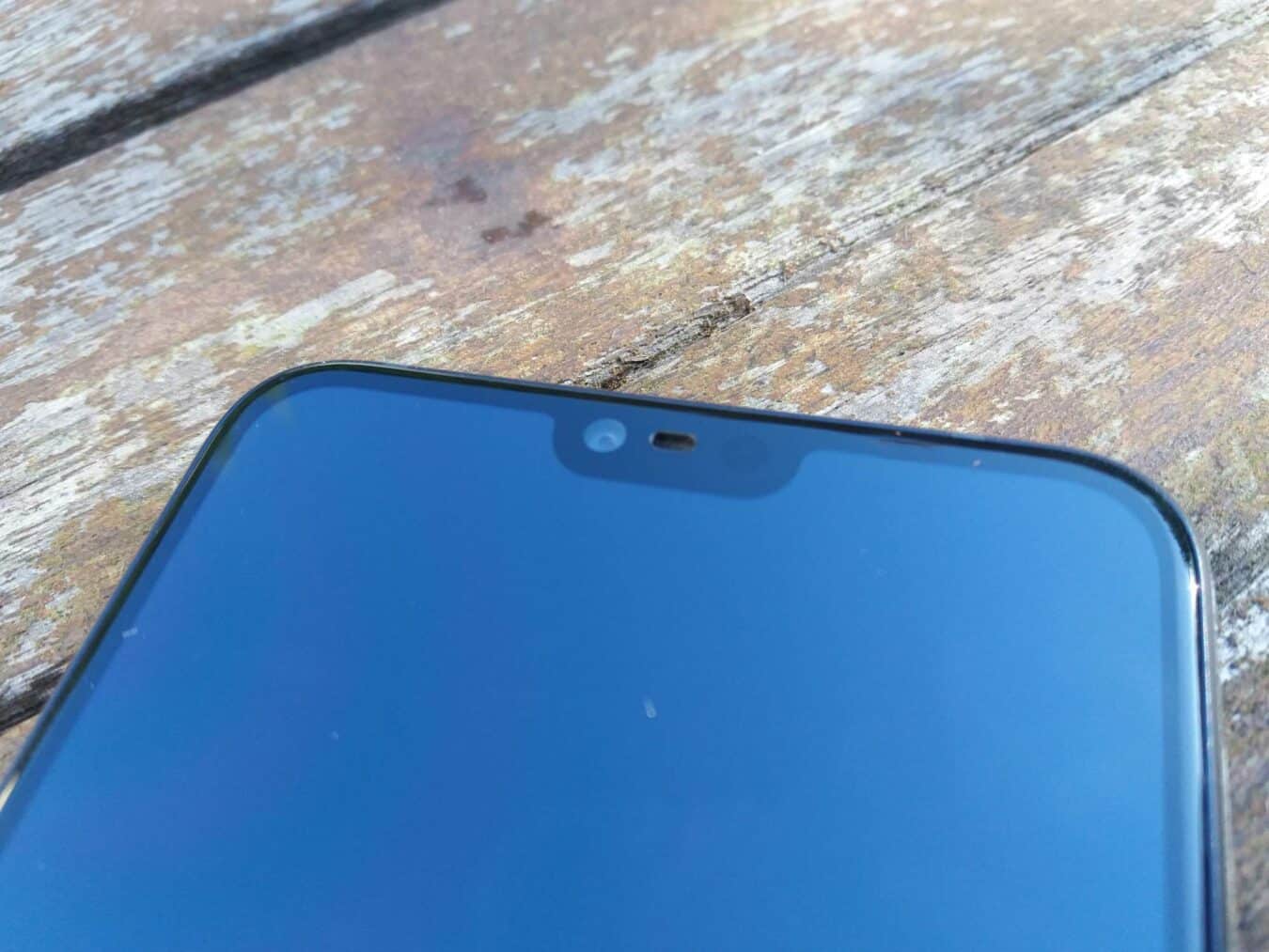On remarque la présence de l’encoche majoritairement présente sur les smartphones actuels. Celle-ci est bien agencée, n’occupe que peu de place sur l’écran et comprend l’appareil photo et le haut-parleur d’appel. Nous ne ressentons aucune gêne à l’utilisation quotidienne. La présence de l’encoche est étonnante du fait de la présence d’une bordure sur le bas du smartphone.