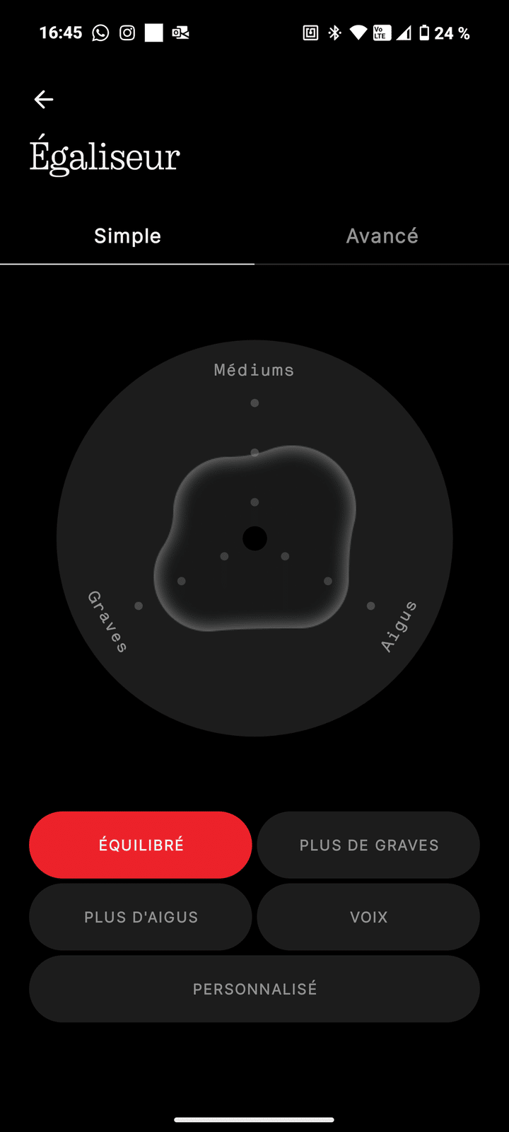 Sur le plan sonore, les Ear (3) confirment les ambitions de Nothing. Le rendu est équilibré, précis et vibrant. Également, les basses descendent bien sans être trop présentes, les médiums conservent une belle chaleur, et les aigus gagnent en clarté. Par ailleurs, l’égaliseur permet d’ajuster tout comme on le souhaite.