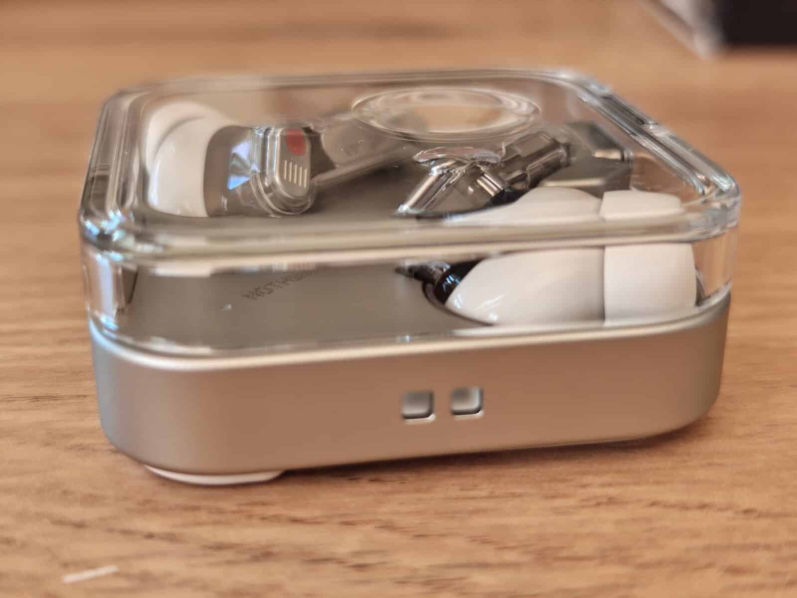 Dès l’ouverture, on retrouve cette sensation unique propre à Nothing. En conséquence, le packaging, épuré et compact, joue sur le contraste entre le blanc immaculé et la transparence. À l’intérieur, le boîtier carré se dévoile, minimaliste, léger, et toujours aussi élégant. Un design toujours aussi atypique qui ne manque pas de charme et qui attire l’oeil comme tous les produits Nothing.