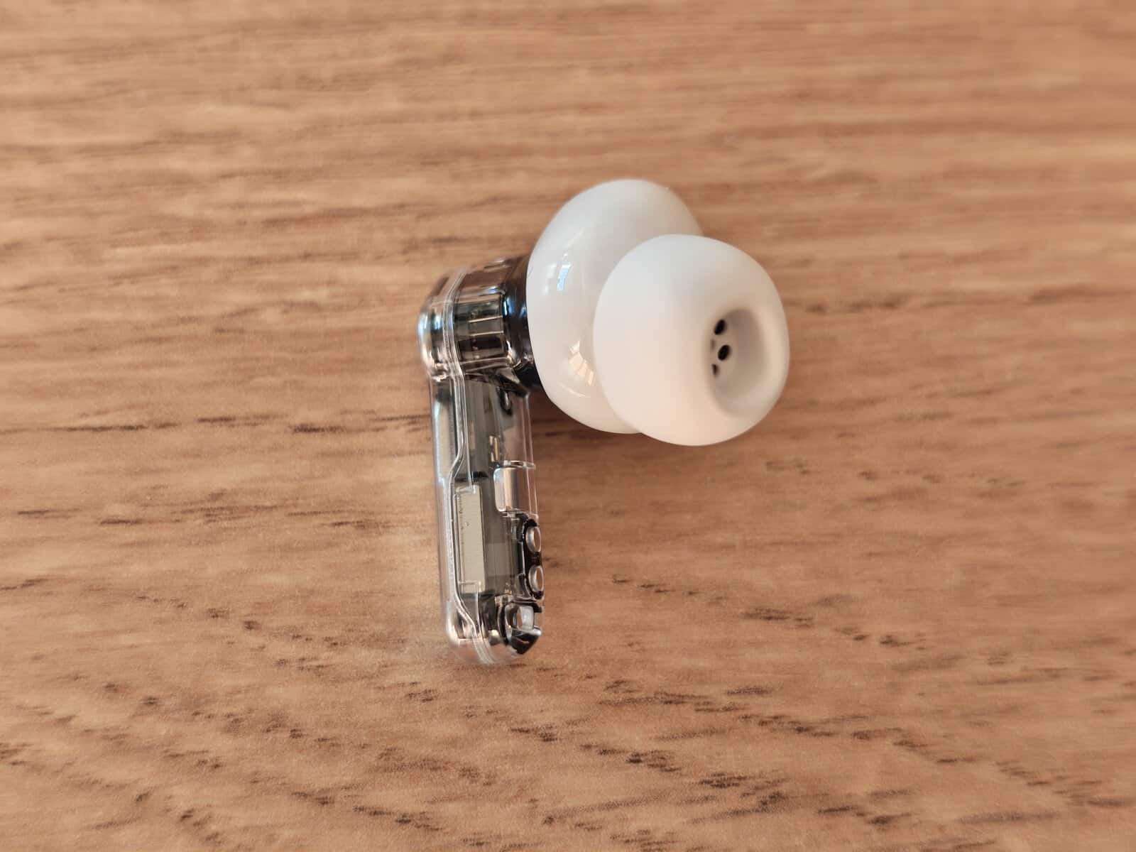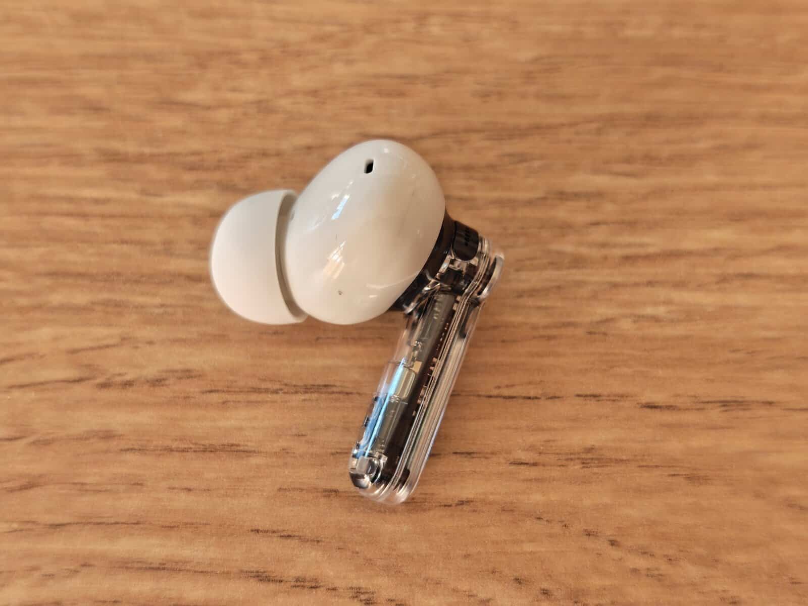Les Ear (3) affichent une évolution subtile par rapport aux Ear (2). Ainsi, les lignes sont plus fines, les matériaux légèrement retravaillés, et la tige transparente reste la marque de fabrique du constructeur. Aussi, les circuits visibles sous le plastique rappellent l’ADN de la marque : technologique, assumé, presque artistique.