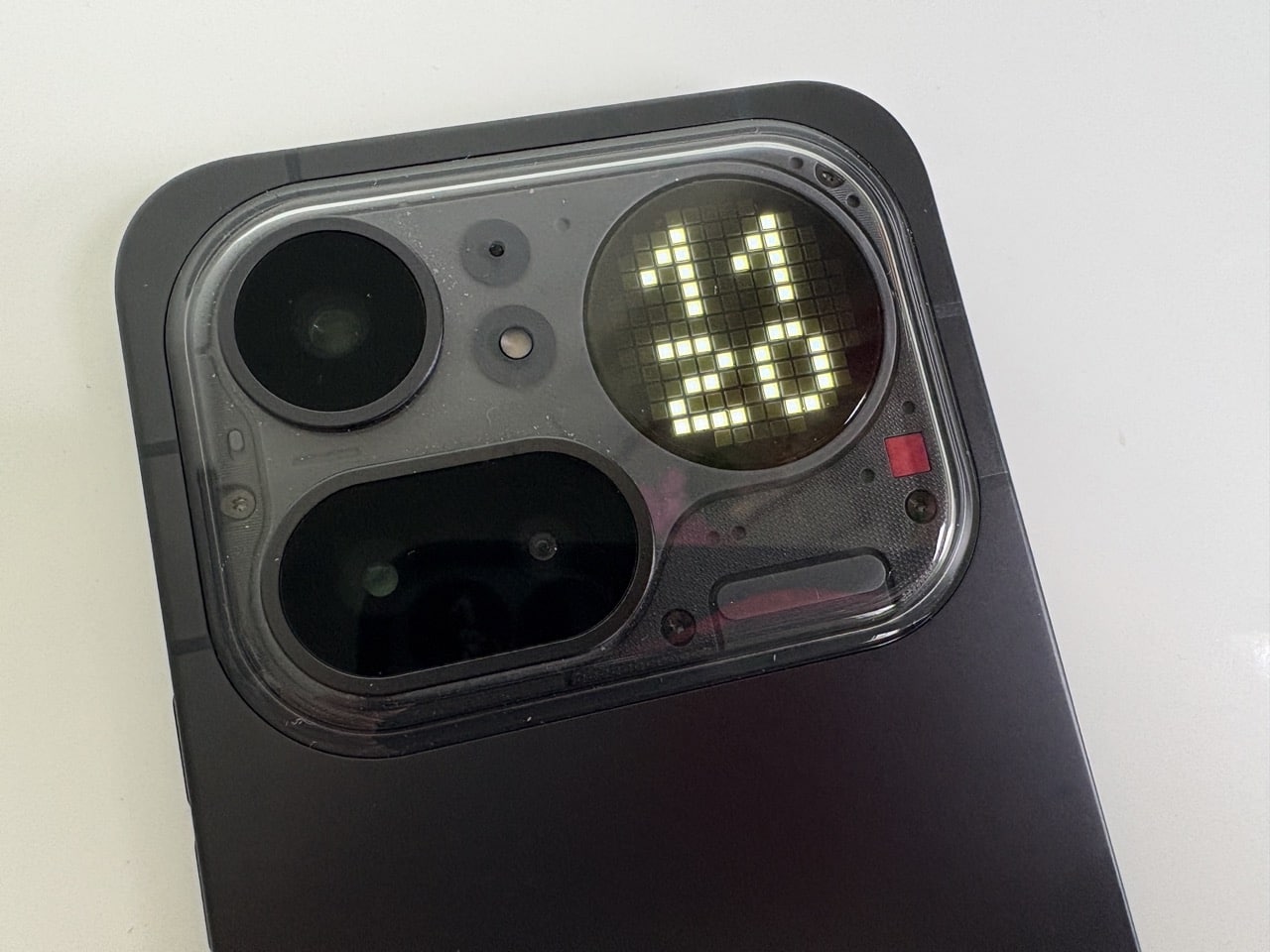 Et puis il y a ce fameux système lumineux. La Glyph Matrix fait son retour, avec encore plus de possibilités. Notifications, appels, minuteries, interactions avec certaines apps… tout passe par ces LED intégrées au dos.