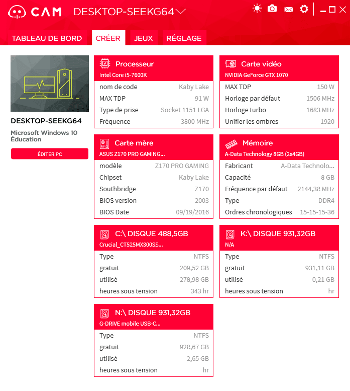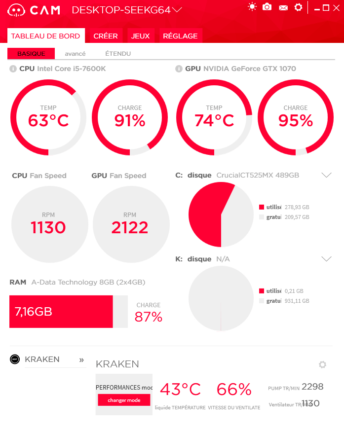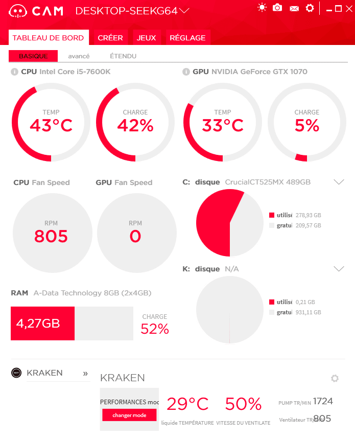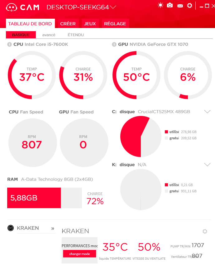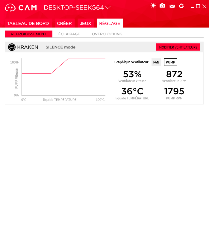 Cam sert à avoir un contrôle sur la température ainsi que les couleurs de votre pc… Vous pourrez donc monitorer les modes du X62, ainsi que sa couleur :