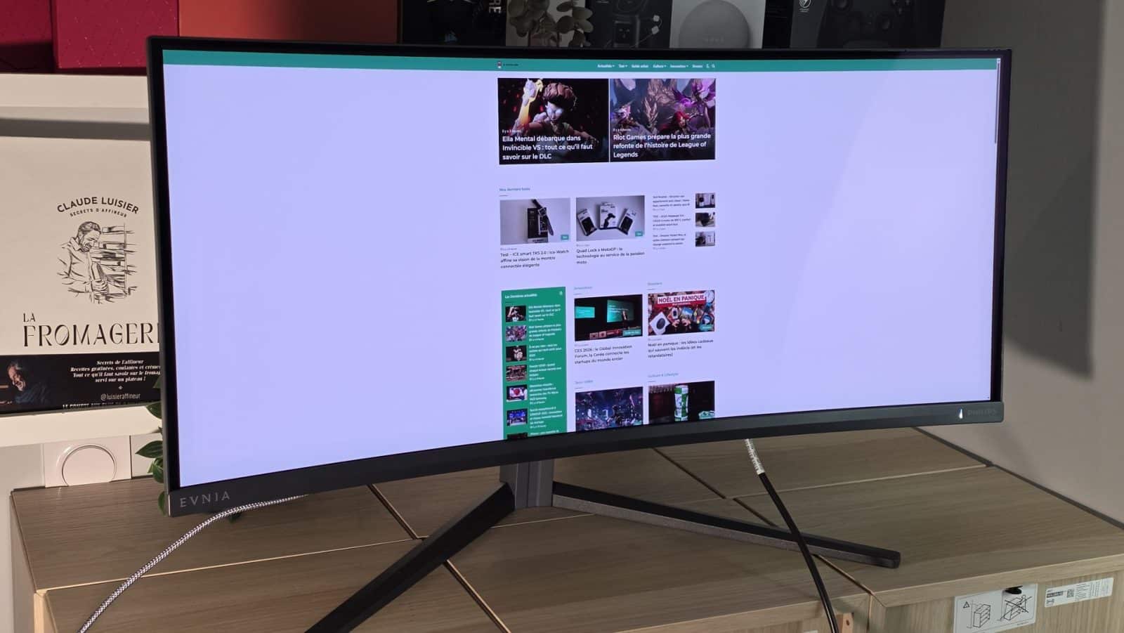 Au quotidien, le Philips Evnia 34M2C6500 se montre très agréable à utiliser. Le format 21:9 apporte un vrai gain d’espace horizontal, que ce soit pour le jeu ou pour des usages plus polyvalents. En gaming, l’immersion est immédiate dans les titres compatibles, avec un champ de vision élargi qui renforce la sensation de profondeur. Pour la productivité légère ou le multimédia, l’écran permet d’afficher plusieurs fenêtres côte à côte sans effort.