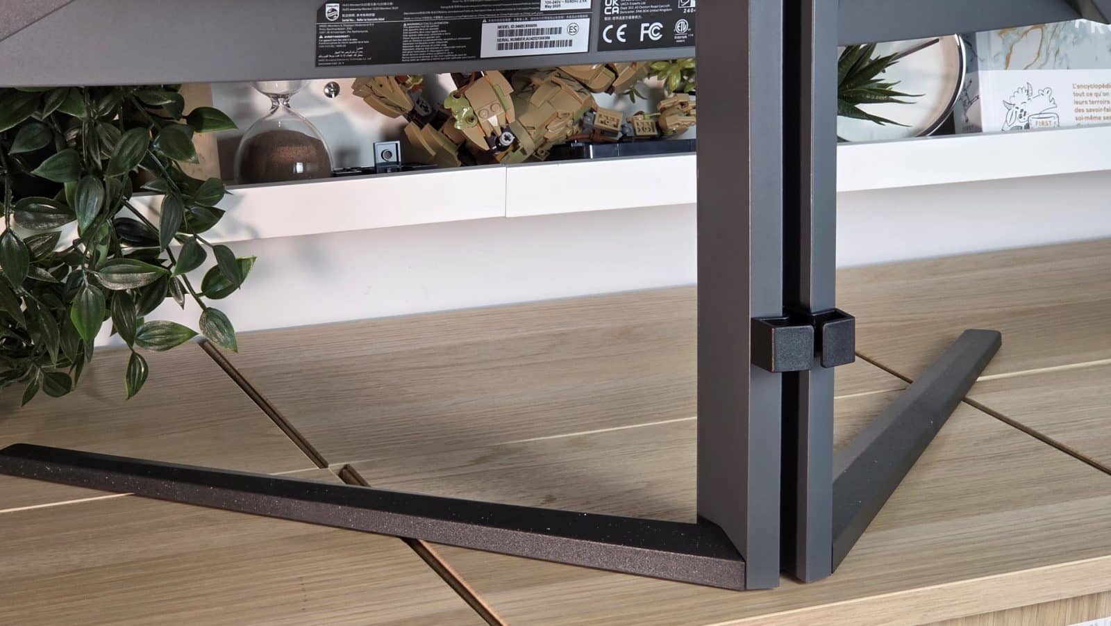 Le déballage du Philips Evnia 34M2C6500 est simple et efficace. L’écran est bien protégé dans son carton, avec des cales solides qui sécurisent la dalle incurvée. Philips fournit l’ensemble des câbles annoncés dans la fiche technique. On retrouve un câble HDMI, un DisplayPort, un câble USB ascendant, le cordon d’alimentation et le support VESA. Le moniteur est livré avec son pied, prêt à être assemblé. Le montage ne pose aucune difficulté particulière. Le pied se fixe rapidement, sans outil complexe, et l’ensemble inspire confiance une fois en place. L’écran reste stable sur le bureau, même lors des ajustements.