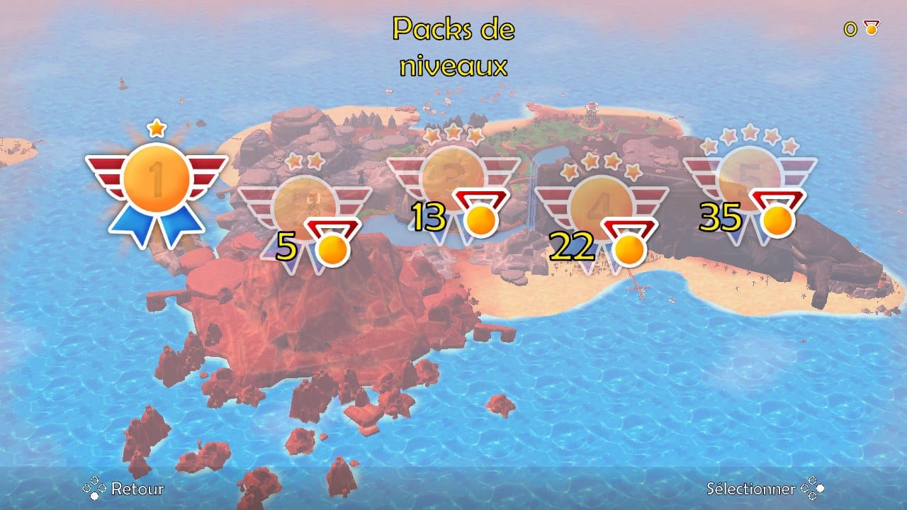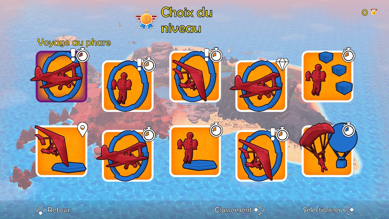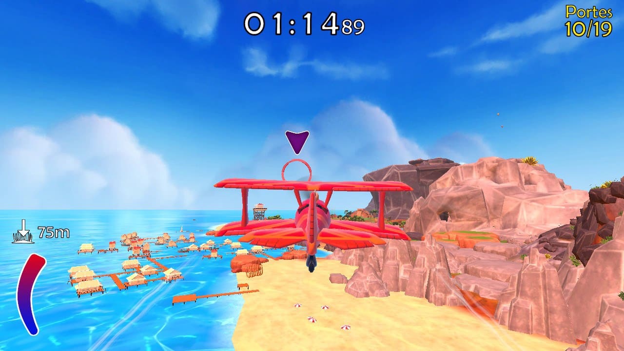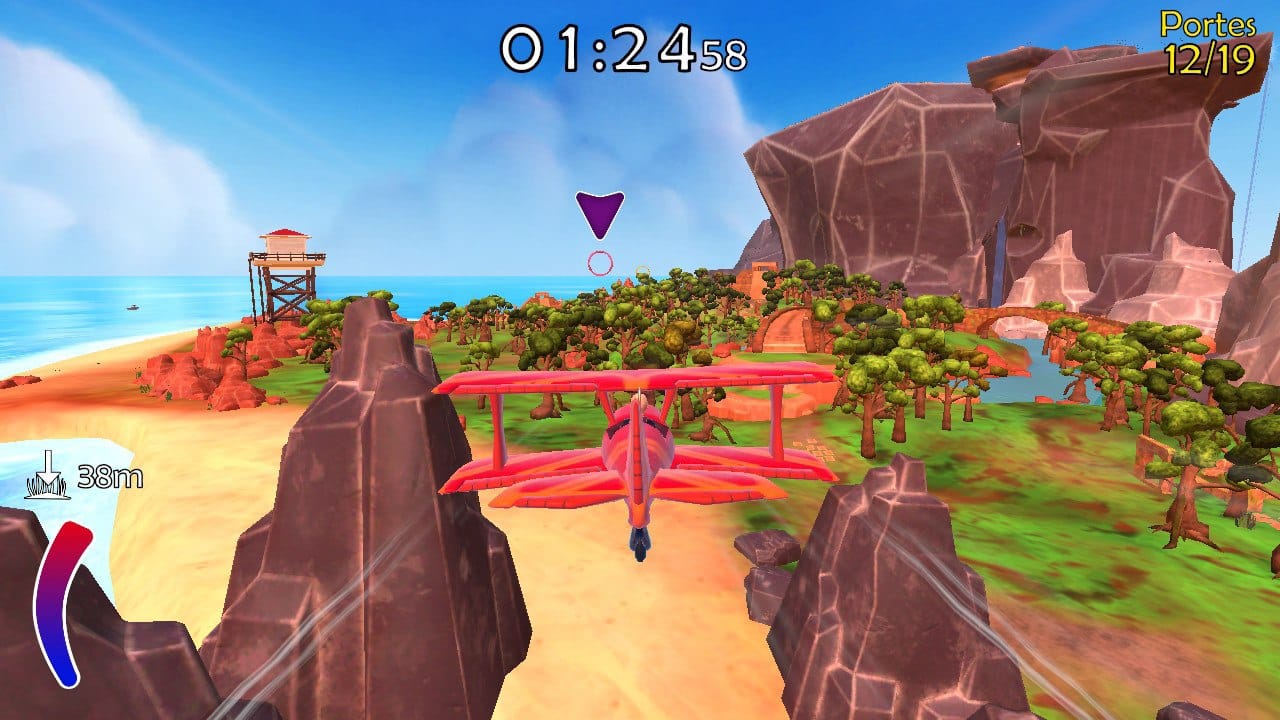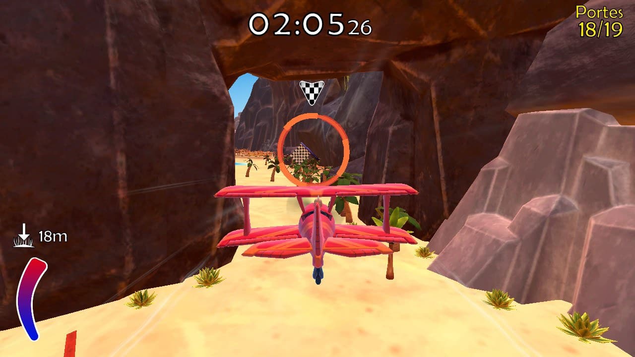 Donc ce jeu propose différentes épreuves sportives se déroulant dans les airs, comme son nom l’indique : Pilot Sports. Ainsi, lors de la découverte du jeu dans le premier monde, le joueur a accès à différentes épreuves, contre la montre ou ayant des objectifs. Or il pourra alterner entre l’avion, les jetpack ou encore le deltaplane.