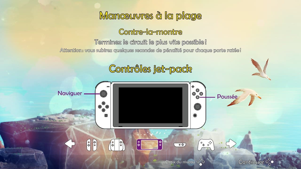 Après, lors de la deuxième épreuve de jet pack où l’on doit apprendre à se poser sur des plateformes et faire le plein, c’est tout l’opposé. Ainsi, cette épreuve est intuitive et très réussie. Déstabilisant, non, donc ce serait plus au niveau du level design ou du côté du tutoriel que le problème se situe peut-être.