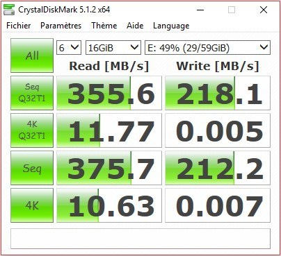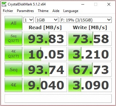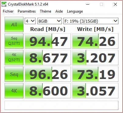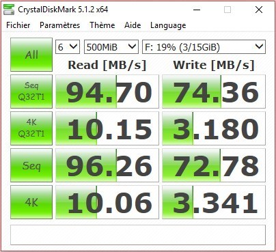 Les débits de transferts que vous obtiendrez dépendront également des débits de votre carte mémoire. Ici, nos tests sont réalisés avec une carte SD Sandisk Extreme.