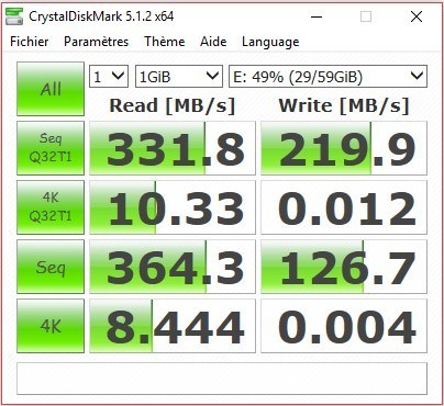 En outre les débits proposés par la clé USB HyperX Savage sont intéressants pour les transferts de fichiers volumineux tels que des vidéos en 4K. Les promesses d’HyperX en termes de débits semblent être respectée aux vues de nos tests relativement proches des valeurs maximales indiquées par le fabricant.