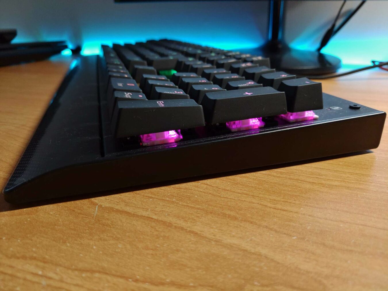 Le clavier est équipé de switch bleus permettant une bonne réactivité en jeu. Ils apportent aussi un certain confort d’utilisation. Lors des longues sessions d’utilisation, nous n’avons ressenti aucune fatigue. Les touches tombent facilement sous les doigts et aucun problème d’utilisation a été remarqué.